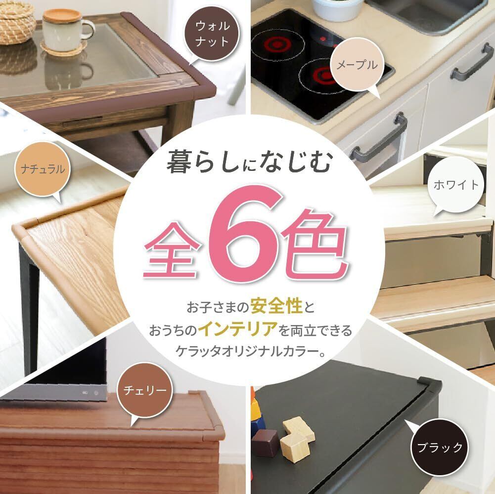 【食品衛生法クリアの安全素材採用】なんでも口に入れてしまう赤ちゃん。パパママが気づいたころには「ぱくっ」としていることもありますよね。ケラッタのコーナーガードは食品衛生法クリアのノンホルムアルデヒド・有害物質非含有で赤ちゃんに安全であることが日本国内の第三者機関で認められています。【商品仕様】クッション:内側幅1.6mm×外側幅2.4mm×厚さ0.8mm【セット内容】コーナーガード5m巻き×1、コーナー用ガード×8、ゲルテープ6m巻き×2、専用ボックス