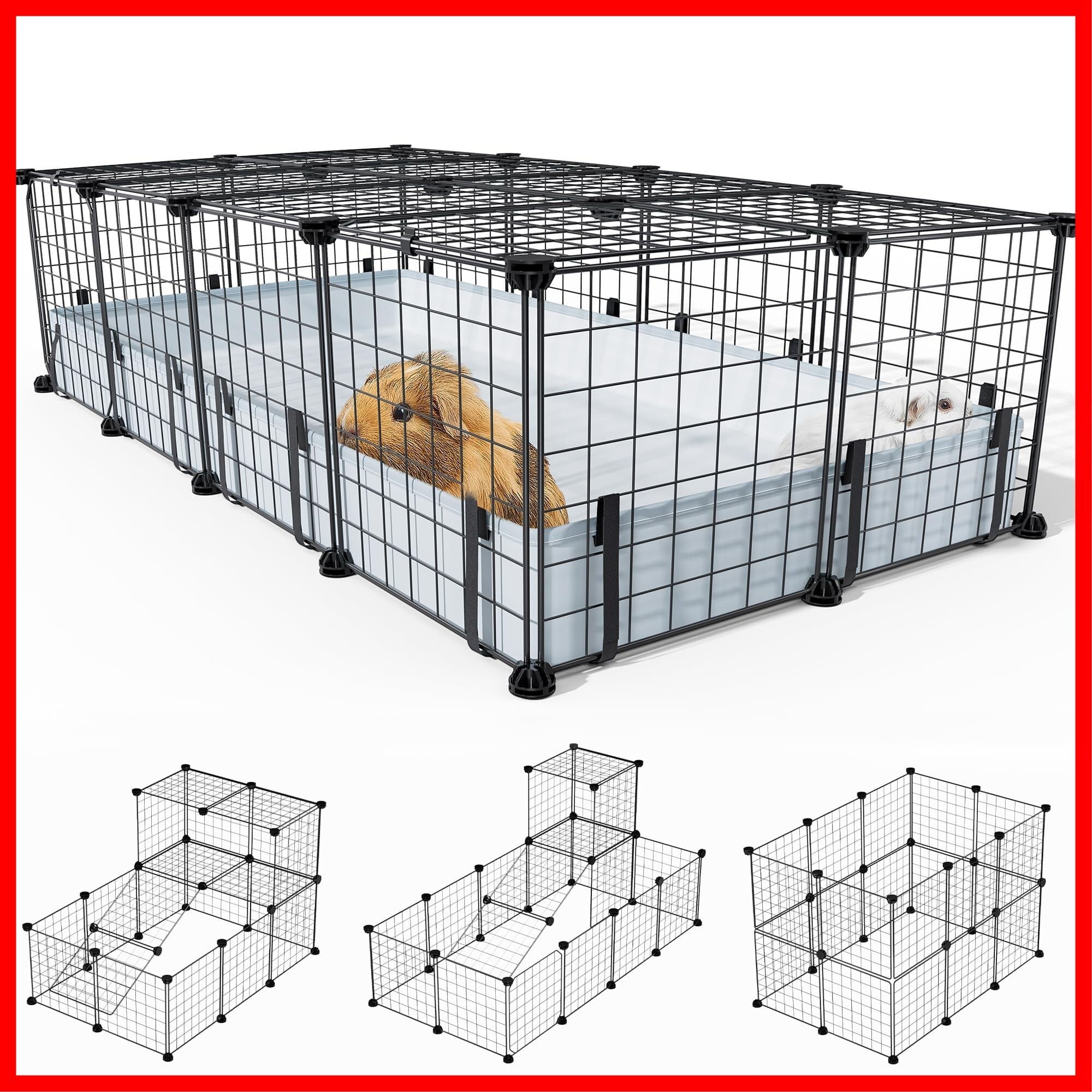 【簡単組み立て・複雑な組み立てをさようなら!】※画像をスワイプすると、取付け動画が表示されます※パネルの一角をABSコネクタに差し込んで、隙間がなくなるまで押し込み、結束バンドで固定するだけで組み立てが完了します。使用環境に応じて、20枚のパネルを活用して長方形や正方形などの形状にケージを変更することができます。