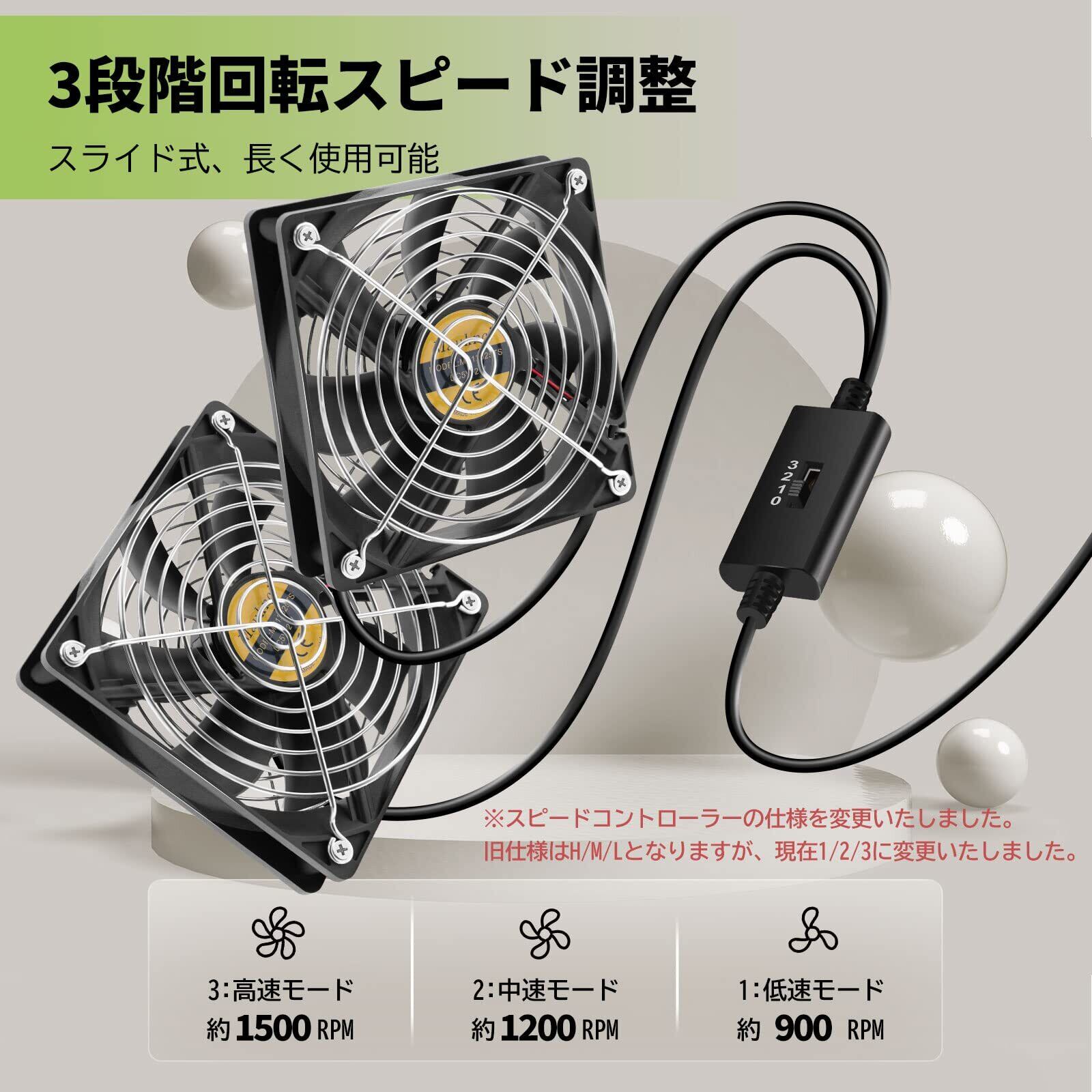 3段階回転スピードの調整ができるため、ご利用環境又は使用対象により、風量の調整が可能になります。騒音値が回転スピードに関わりますため、2、1モードにした場合、極めて静かに稼働してくれます。