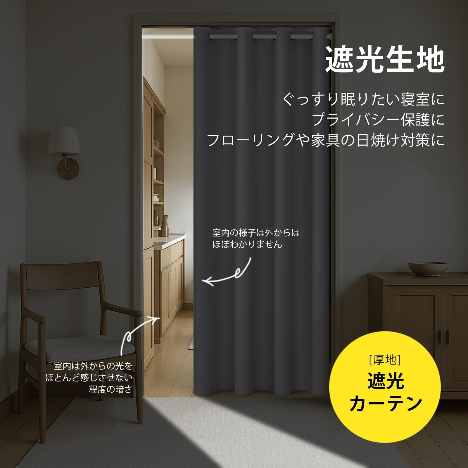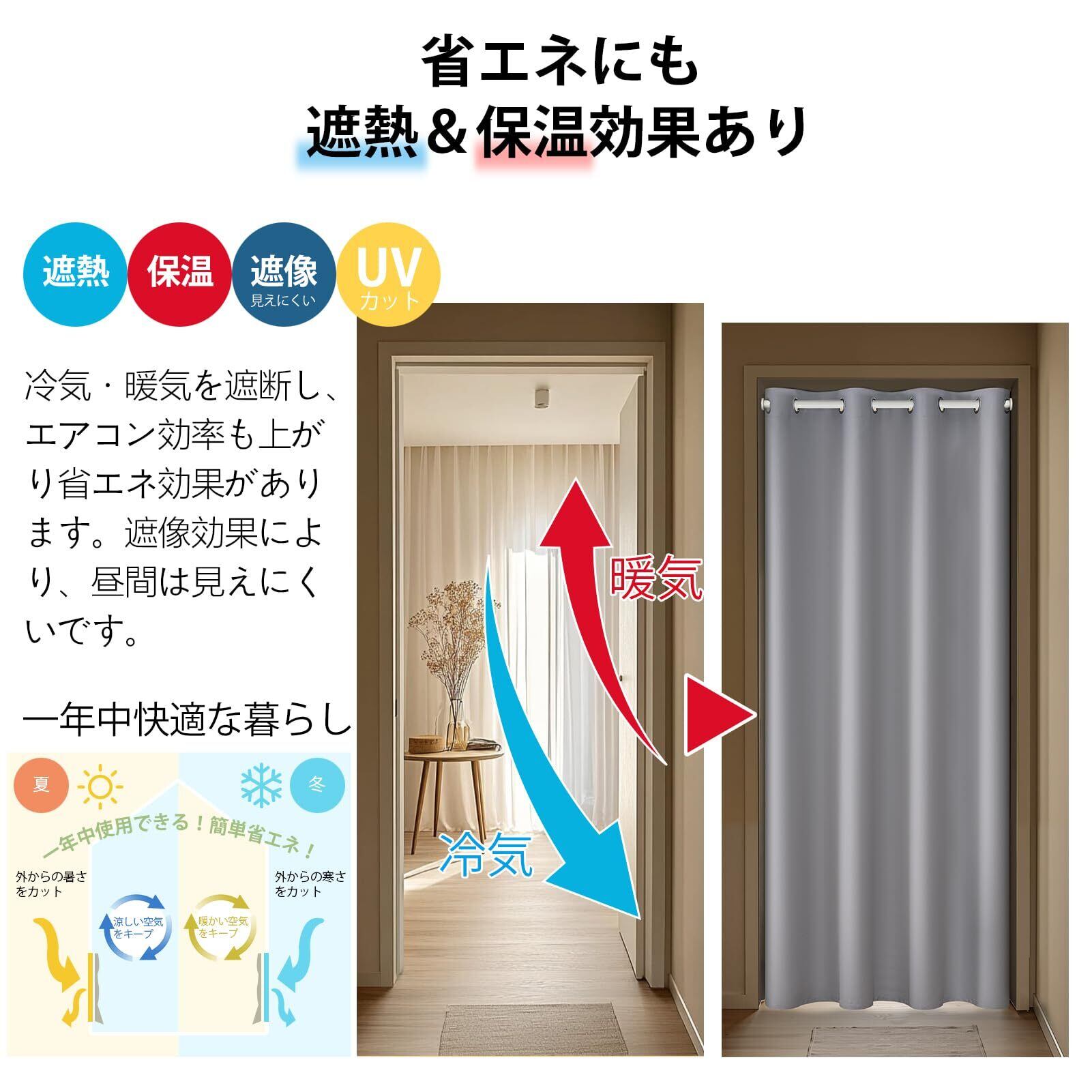 Topfinel カーテン 遮光 間仕切りカーテン 断熱 幅100cm 丈180cm 1枚入り ライトグレー ハトメ型 突っ張り棒 カーテン 仕切りカーテン ドアカーテン 目隠し 玄関 キッチン リビング