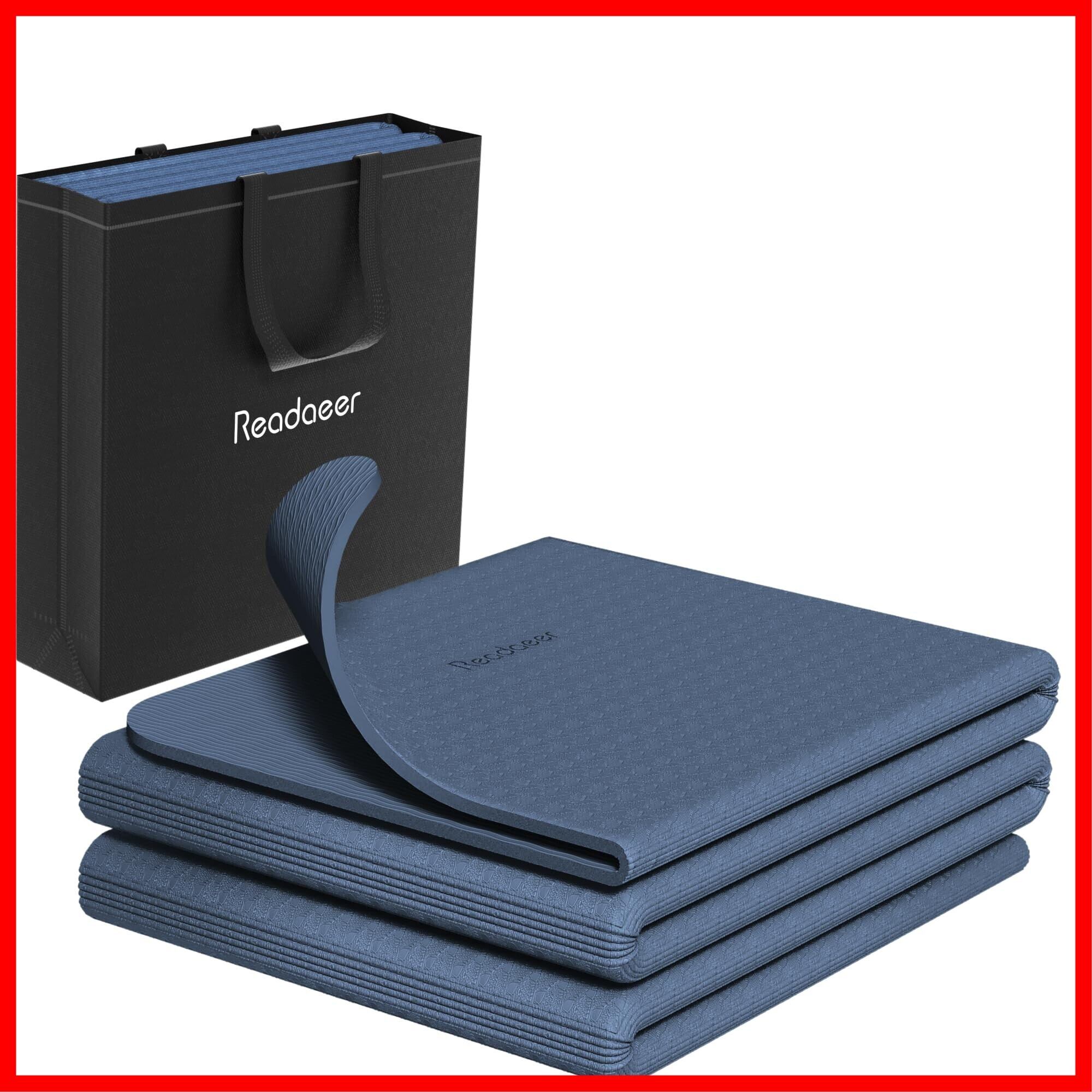 Readaeer ヨガマット トレーニングマット 折り畳み式 183cm×61cm 厚め 6mm TPE素材 無臭 防音 収納バッグ付き 軽量 持ち運び・収納便利 ストレッチマット エクササイズマット フィットネスマット ピラティスマット