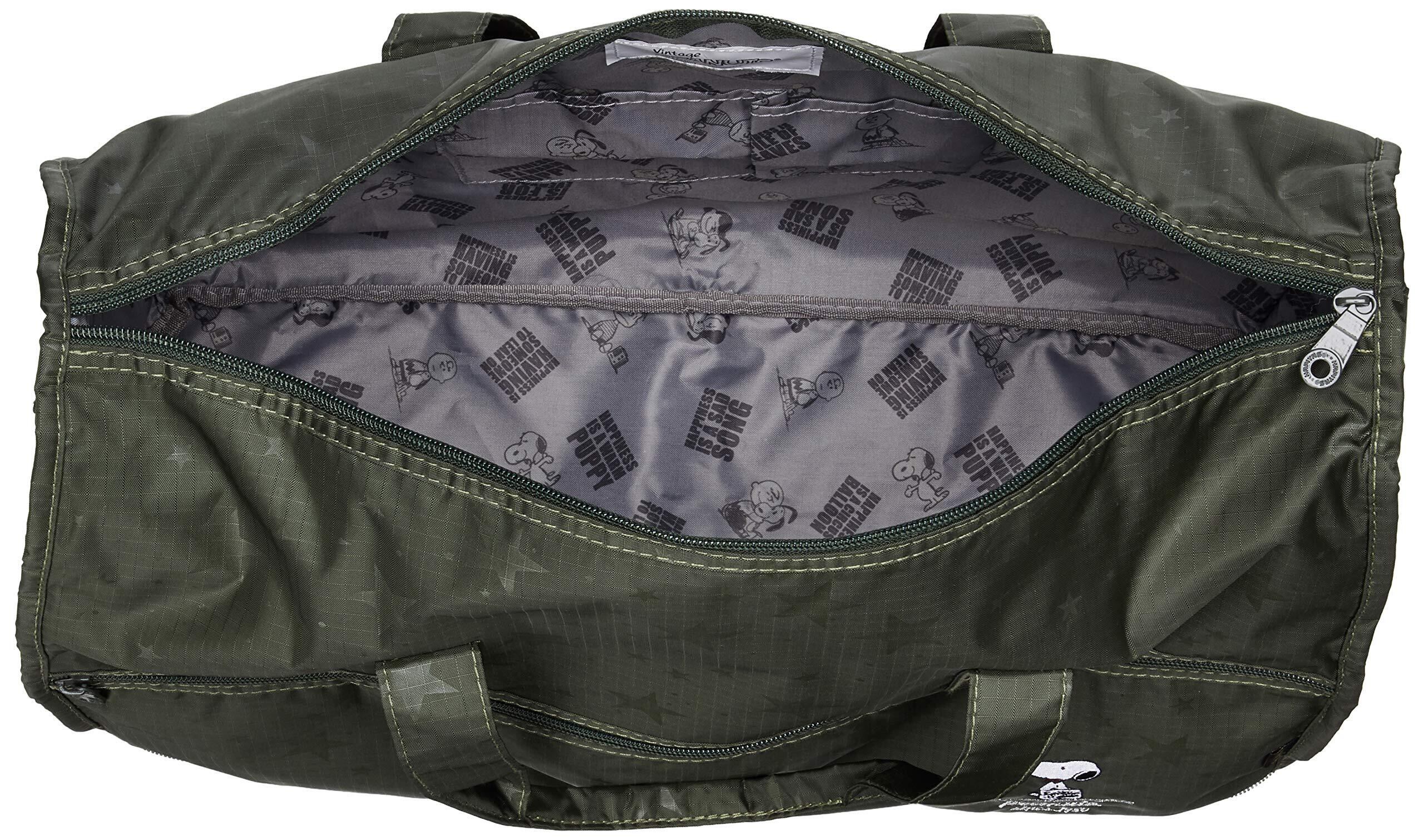 スヌーピーのコンパクトにたためる折りたたみボストンバッグ。
