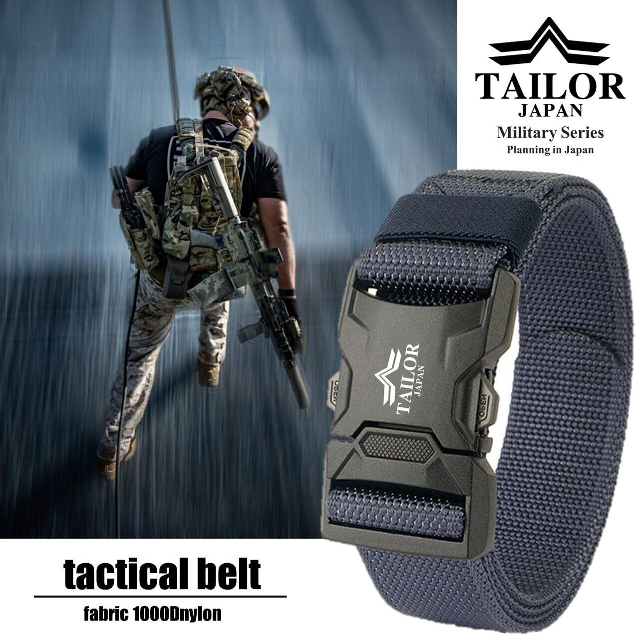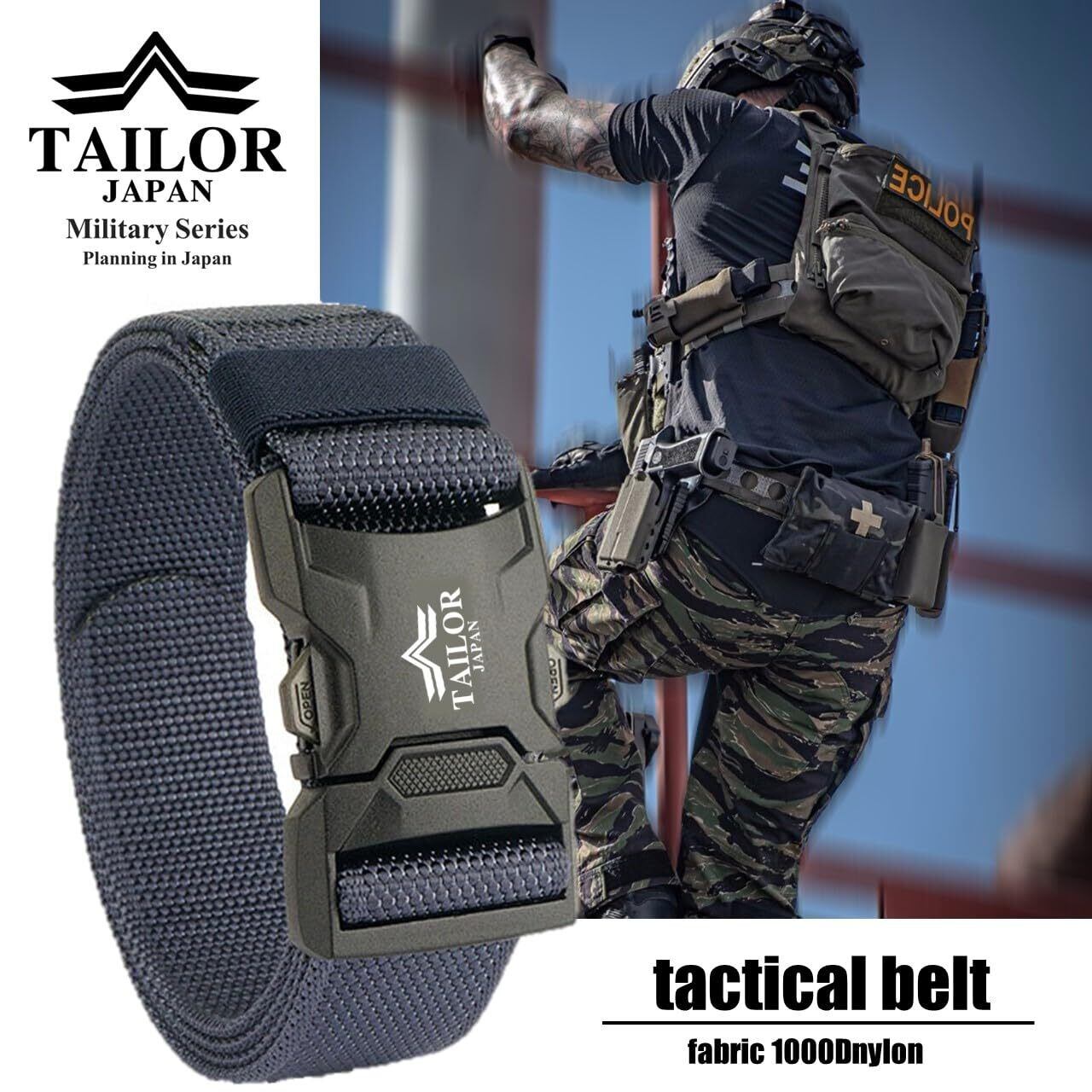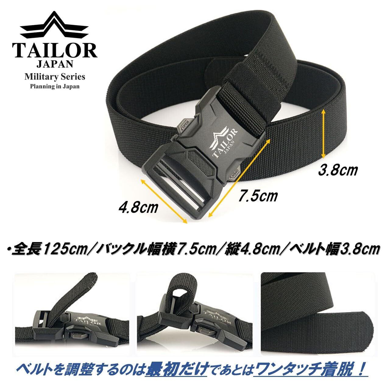 [TAILOR JAPAN] 新型 ワンタッチベルト サバゲーベルト タクティカルベルト ミリタリーベルト タクティカル ベルト ナイロンベルト サバゲー装備 作業用ベルト 1000Dナイロン製 フリーサイズ (ネイビー)