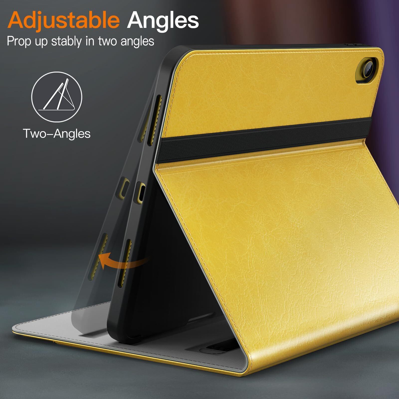 JETech iPad(A16)ケース 第11/10世代(2025/2022モデル)用PUレザー ビジネスフォリオ タブレット保護カバー Pencilホルダーとポケット付き マルチアングルの視聴 (イエロー)
