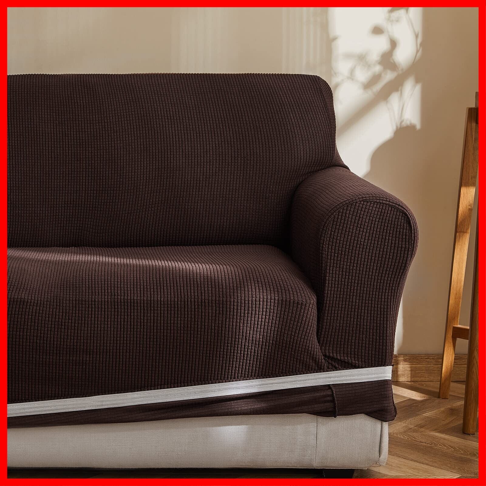 Topfinel ソファーカバー 3人掛け 肘付き 無地 北欧風 ストレッチ フィットタイプ 伸縮素材伸び良く 滑り止め 柔らかい 犬 猫 傷 防止 超便利 四季適用 (チョコレート) | hananoki