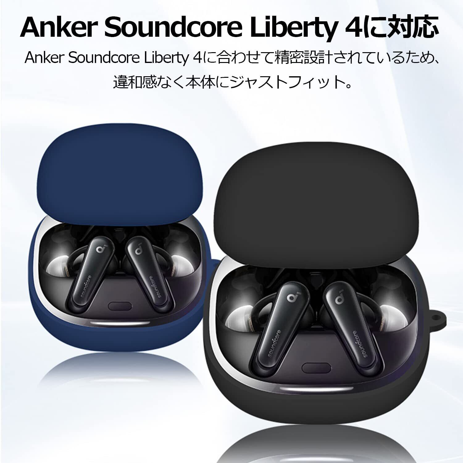 TALENANA for anker soundcore liberty 4ケース シリコーン 保護カバー 耐衝撃 防水 防塵 キズ防止 装着充電可能 全面保護ケース イヤホン カラビナ付き anker soundcore liberty 4 対応(ブラック)