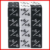 セット内容:サイズ16mm角、+1~+6ホワイトダイス12個と、-1~-6ブラックダイス12個のセットです。
