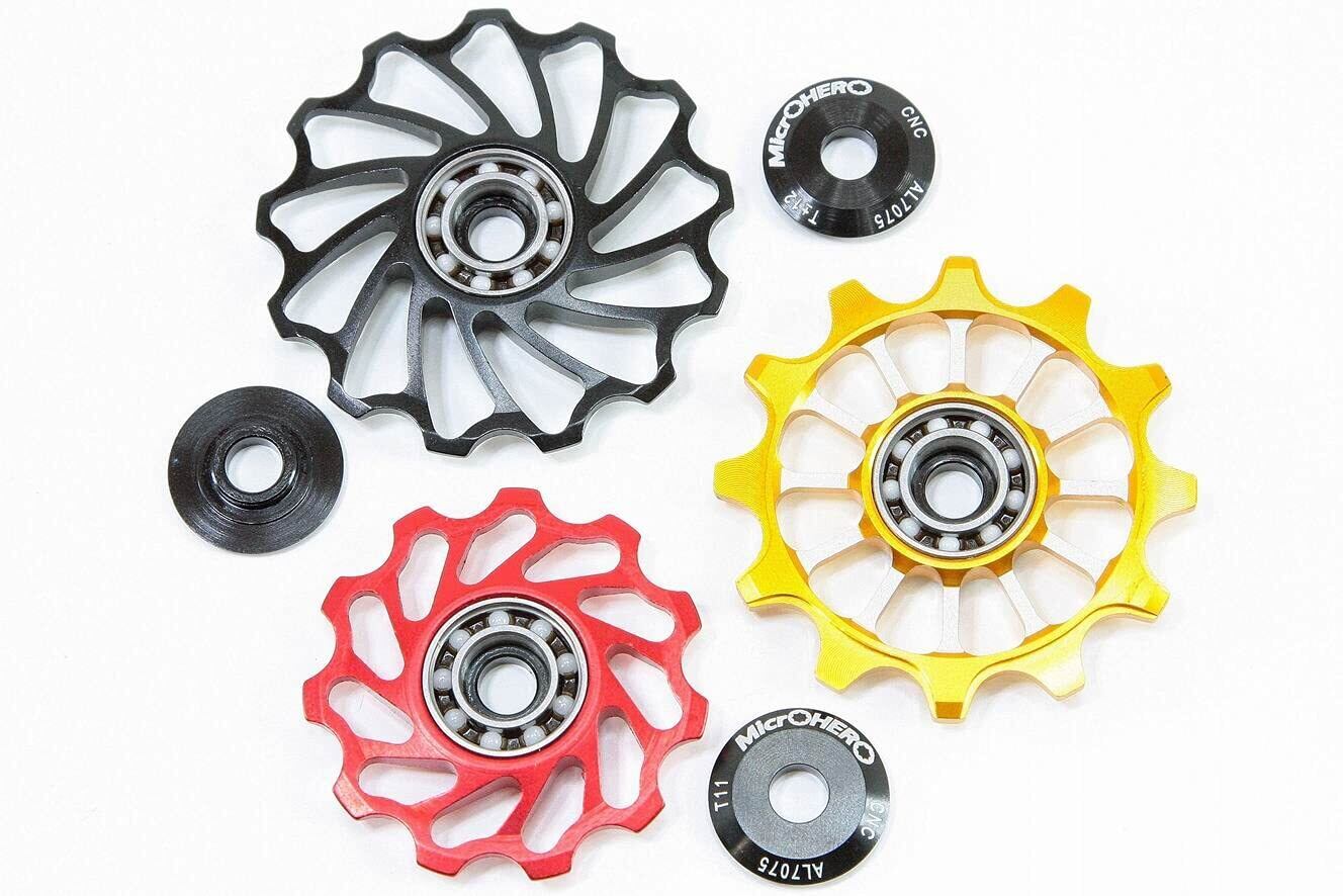 ・マイクロヒーロー(MicrOHERO)のアルミCNCボーディにセラミックベアリング使用しました、軽量リアディレーラー用プーリーです。