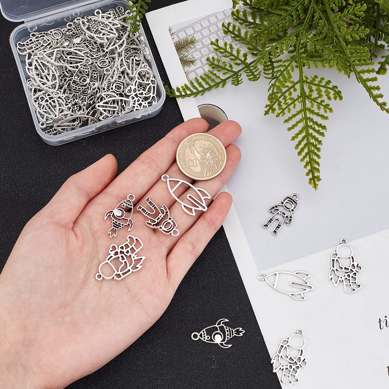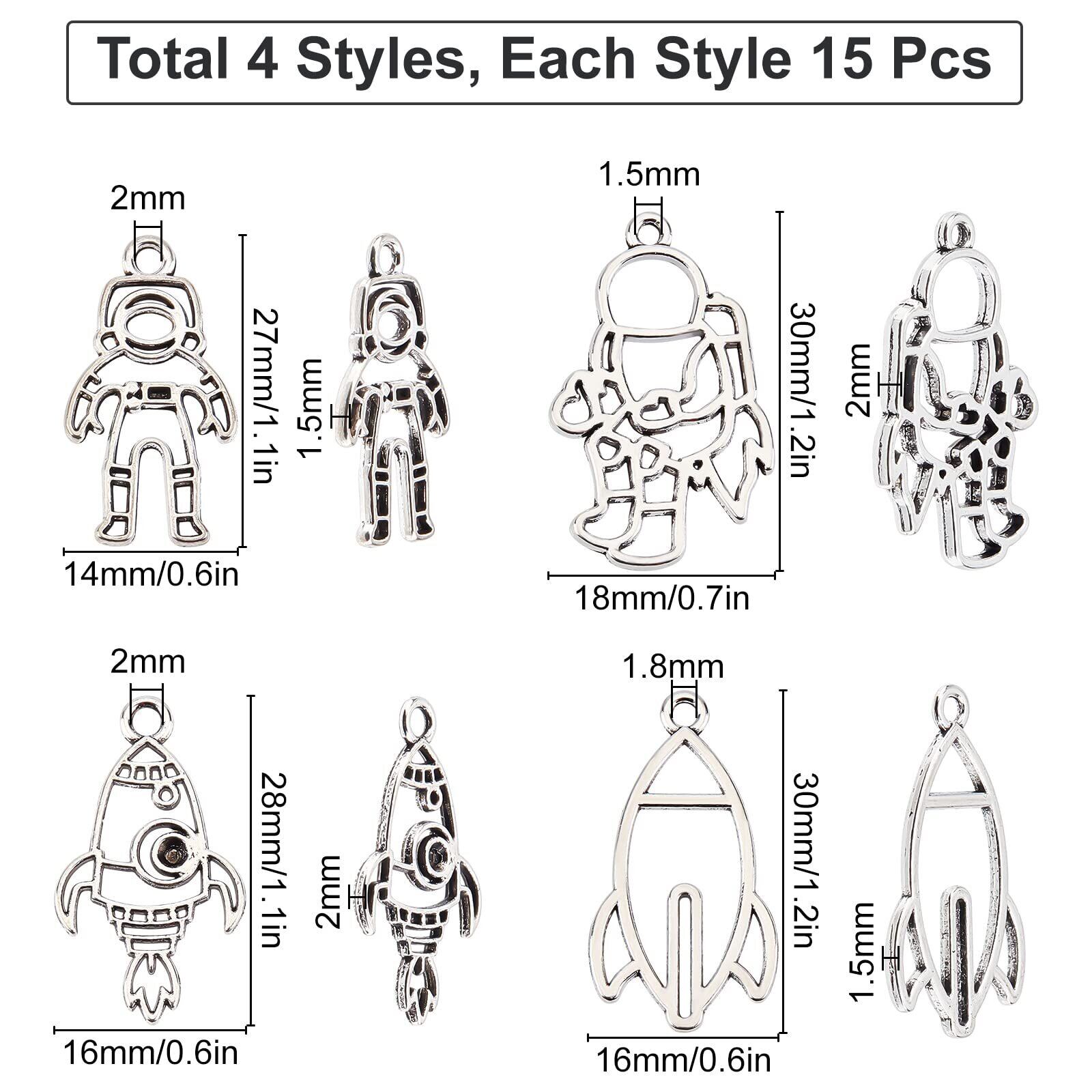 1ボックス60個4スタイルのスポーツチャーム: チベットスタイルの宇宙飛行士チャームペンダントは合計60個、4つのスタイルがあります。すべて素晴らしいアンティークシルバーカラーです.