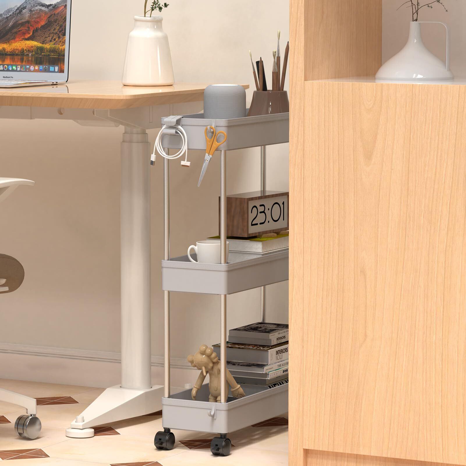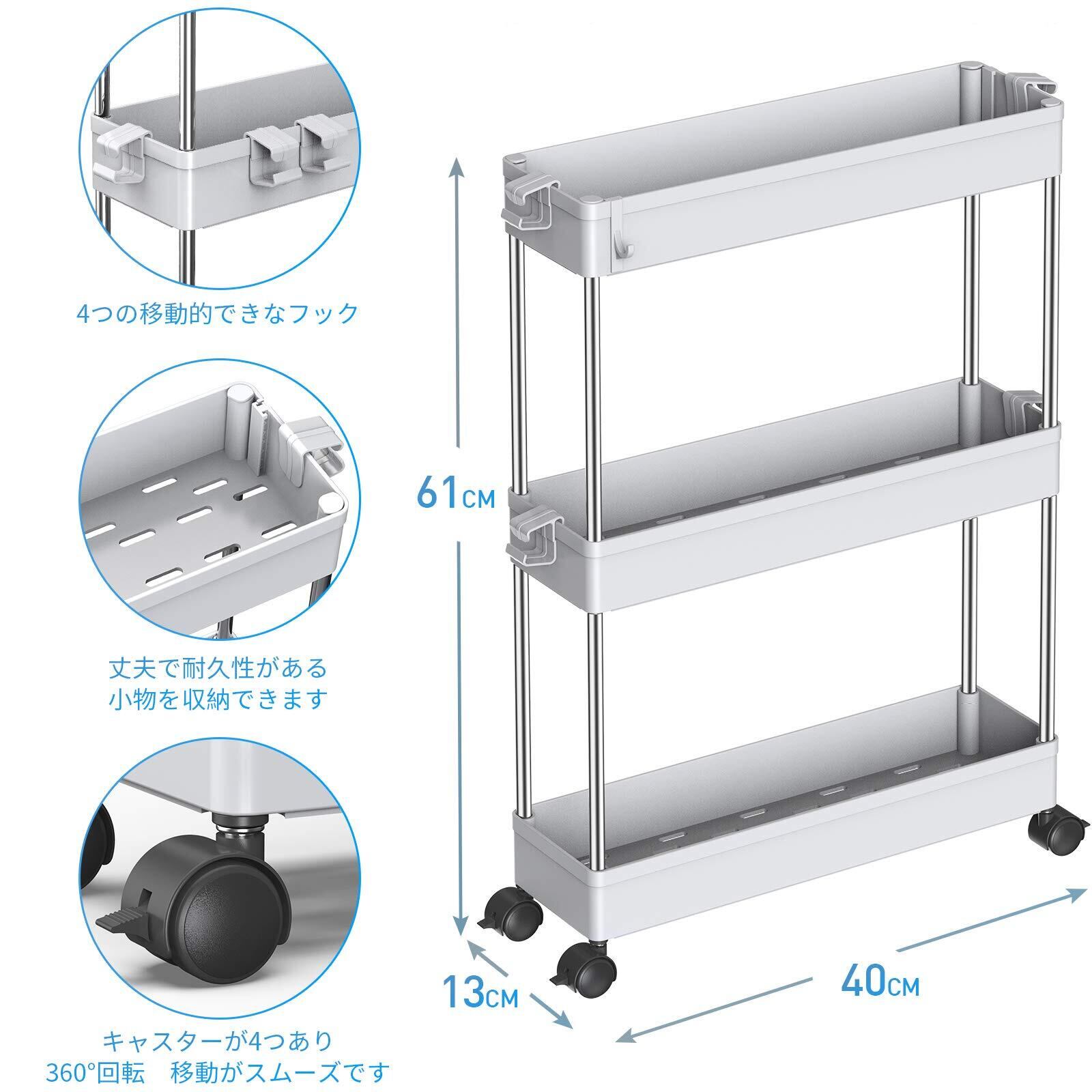 【高品質の家庭用収納 ワゴン】高級な材質は採用なので、高い安定性を誇ります。スリムボディーをして、部屋の隙間に自在に配置されています。トイレ収納、ベッドルーム、居間、子供部屋、キッチン、書店、美容室などの使用に最適して、収納力は抜群です。いろんなシーンで大活躍なキッチンワゴンです