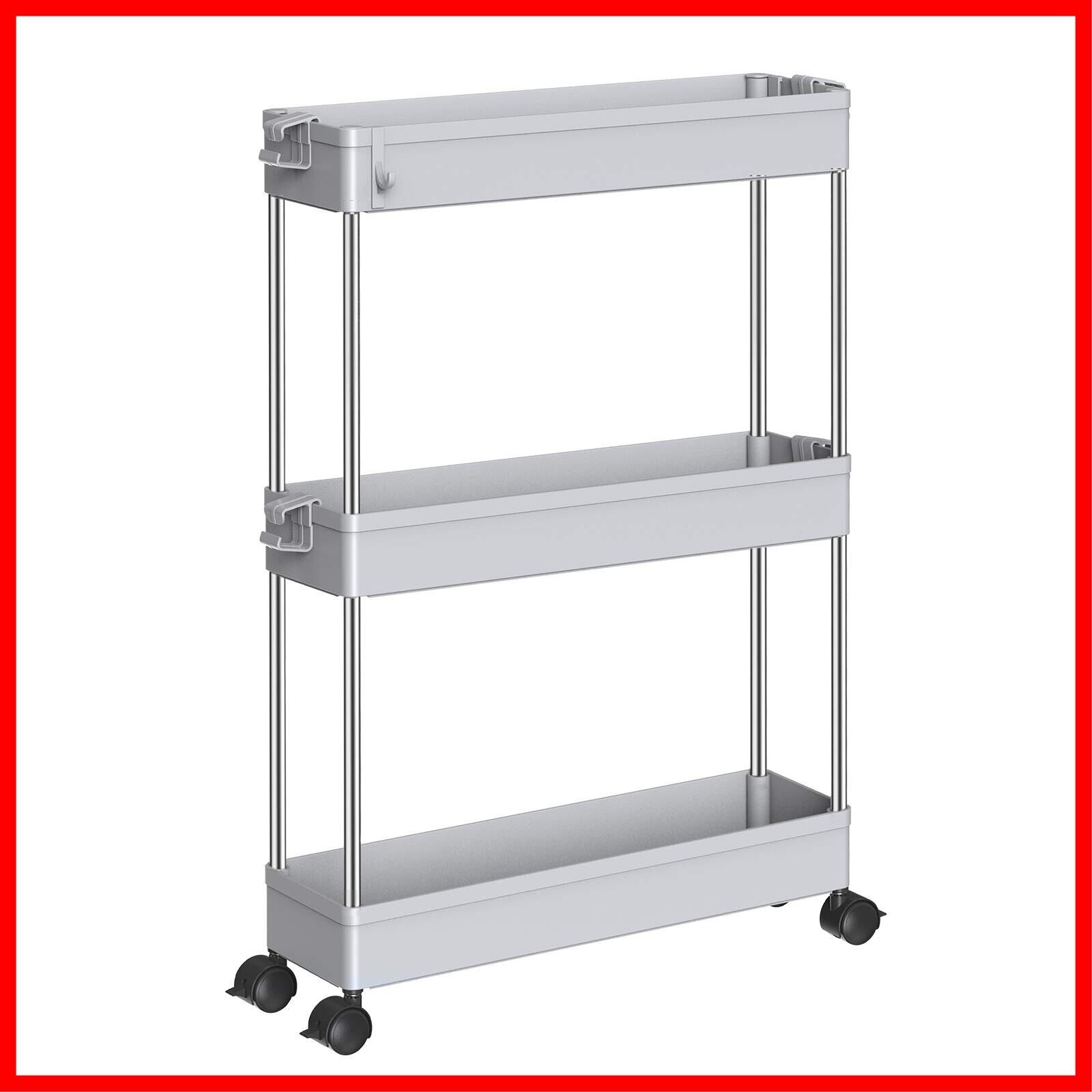 SPACEKEEPER キッチンワゴン スリム 隙間収納 13cm 収納ラック キャスター付き 収納カート ローリングラック おしゃれ 調味料 食品 ペットボトル 小物 台所 洗面所 冷蔵庫横 3段 スリム グレイ