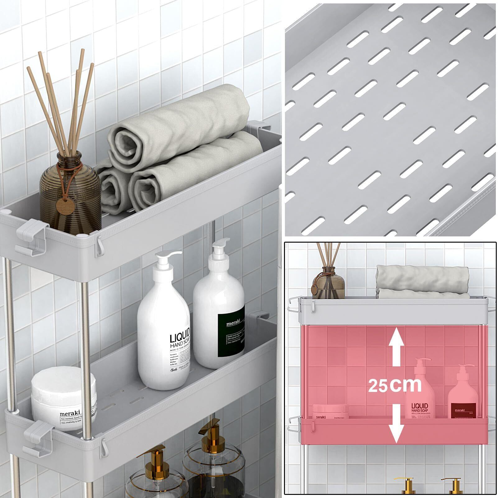 SPACEKEEPER キッチンワゴン スリム 隙間収納 13cm 収納ラック キャスター付き 収納カート ローリングラック おしゃれ 調味料 食品 ペットボトル 小物 台所 洗面所 冷蔵庫横 3段 スリム グレイ | hananoki
