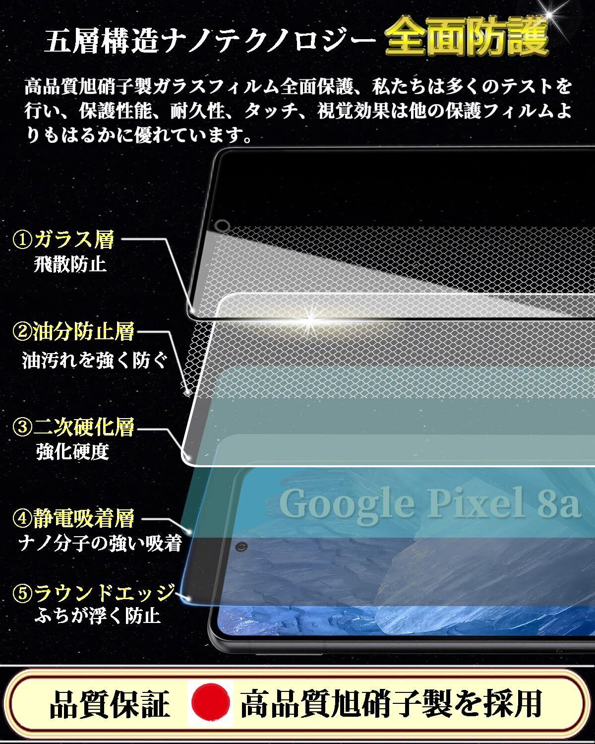 対応 Google Pixel 8a ガラスフィルム 覗き見防止 グーグルピクセル8a 全面保護フィルム のぞき見防止【1枚入り】指紋認証なし 硬度9H 指紋防止 貼り付け簡単 自動吸着 気泡防止 キズ防止 撥水撥油 Pixel 8a 強化ガラス 保護フィルム