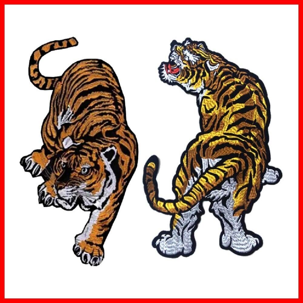 POWIITEM ワッペン 刺繍ワッペン 虎 タイガー アイロン接着 特大アップリケ 大きいサイズ (前後向き各1枚)