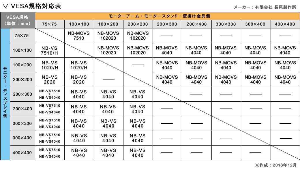 長尾製作所 モニター側VESA規格変換プレート 75/100×75/100→100/200×200 NB-MOVS102020 ブラック