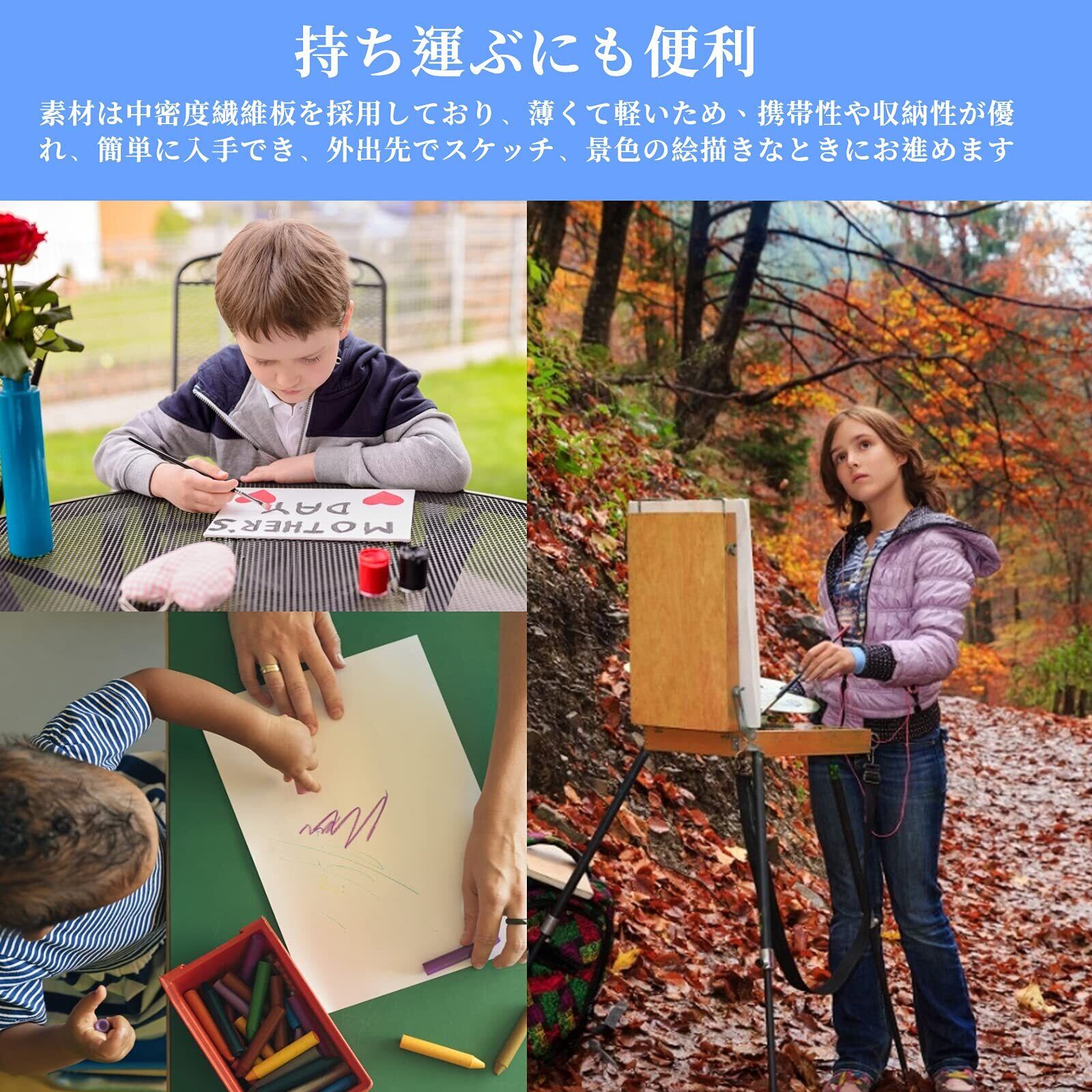 【持ち運ぶにも便利】素材は中密度繊維板を採用しており、薄くて軽いため、携帯性や収納性が優れ、簡単に入手でき、外出先でスケッチ、景色の絵描きなときにお進めます。