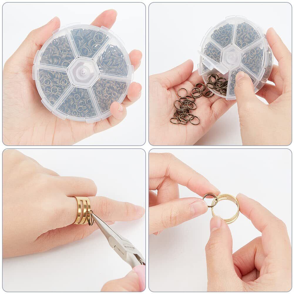 PH PandaHall 6種 鉄製 二重丸カン 4-10mm リング マルカン 丸環 指貫つき 金具セット 基礎パーツ ジュエリー DIY用 アンティークブラウン