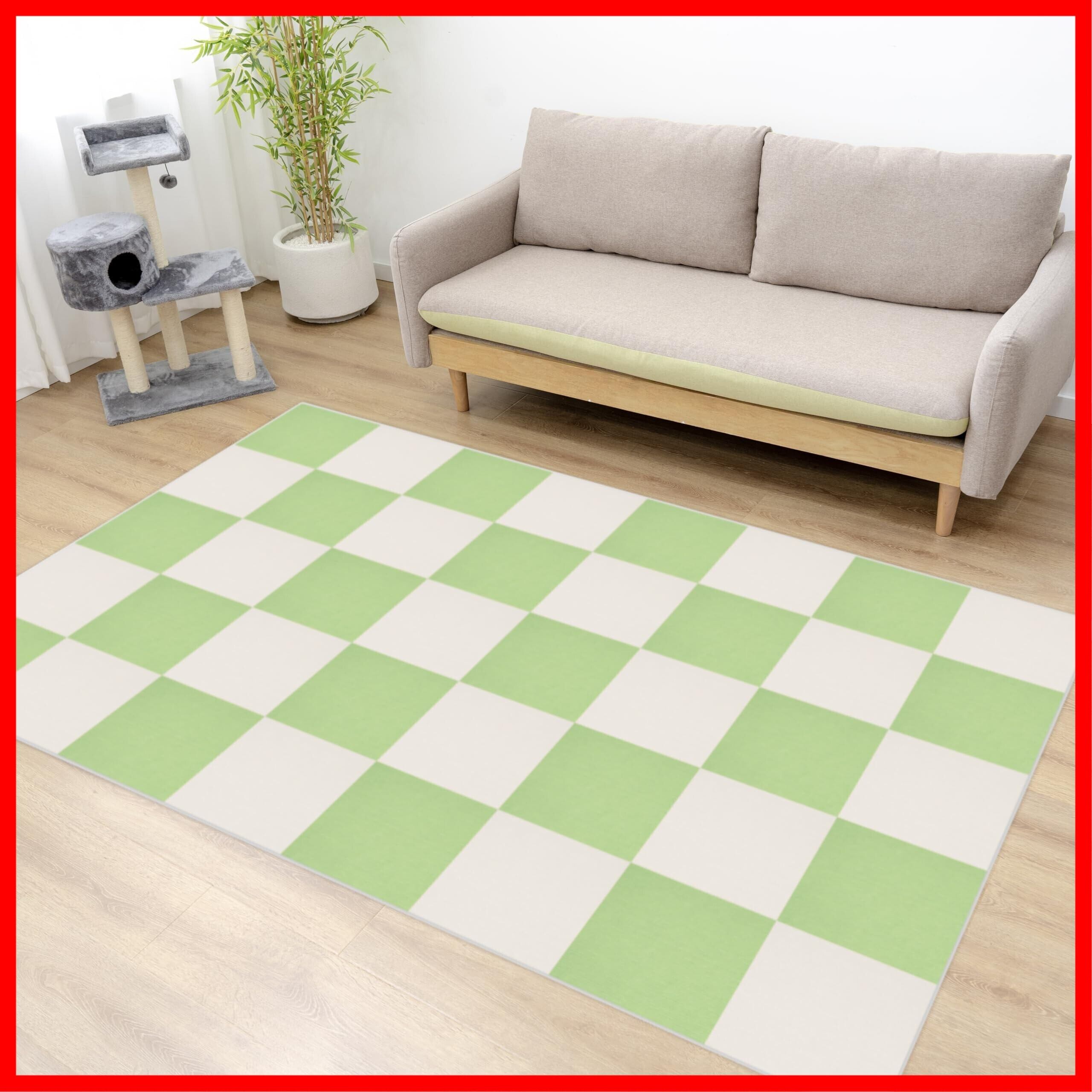 You&ours タイルカーペット 二層構造ボリューム ジョイントマット 厚手5mm 30×30cm 40枚 犬 すべり止めマット ハサミでカット可 フロアマット ずれない 洗える 床保護 保温 設置簡単 床暖房対応 子供や高齢者 アイボリー&グリーン | hananoki
