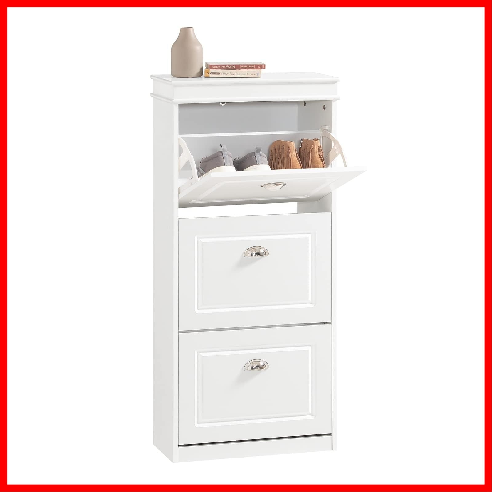 SoBuy 靴箱 スリム 薄型 下駄箱 シューズボックス シューズラック 隠せる 省スペース 大容量 幅53x奥行24x高さ117cm 靴棚 玄関 靴収納 靴置き shoe rack 靴入れ 棚(FSR94-W) | hananoki