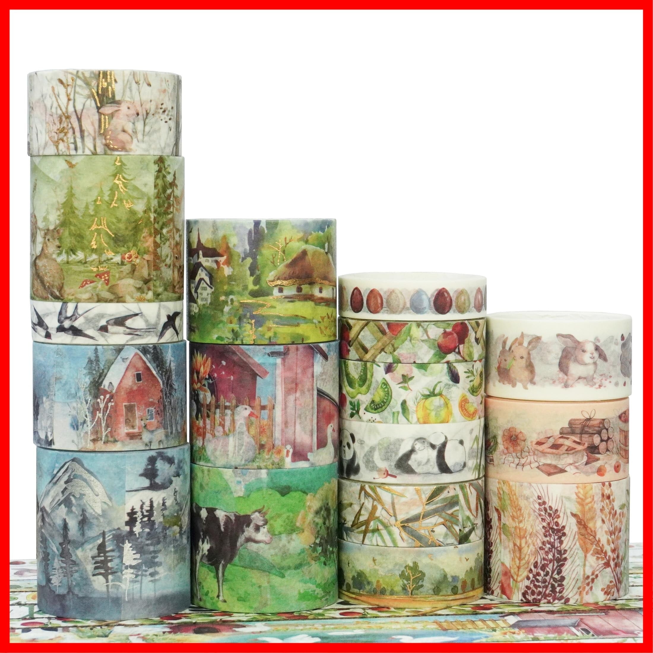 YUBBAEX 17巻 山と森林 マスキングテープ セット 動物 木 金箔押し 広い 和紙テープ アート/DIYクラフト/バレットジャーナル用品/プランナー/スクラップブック/カード/ギフトラッピングに
