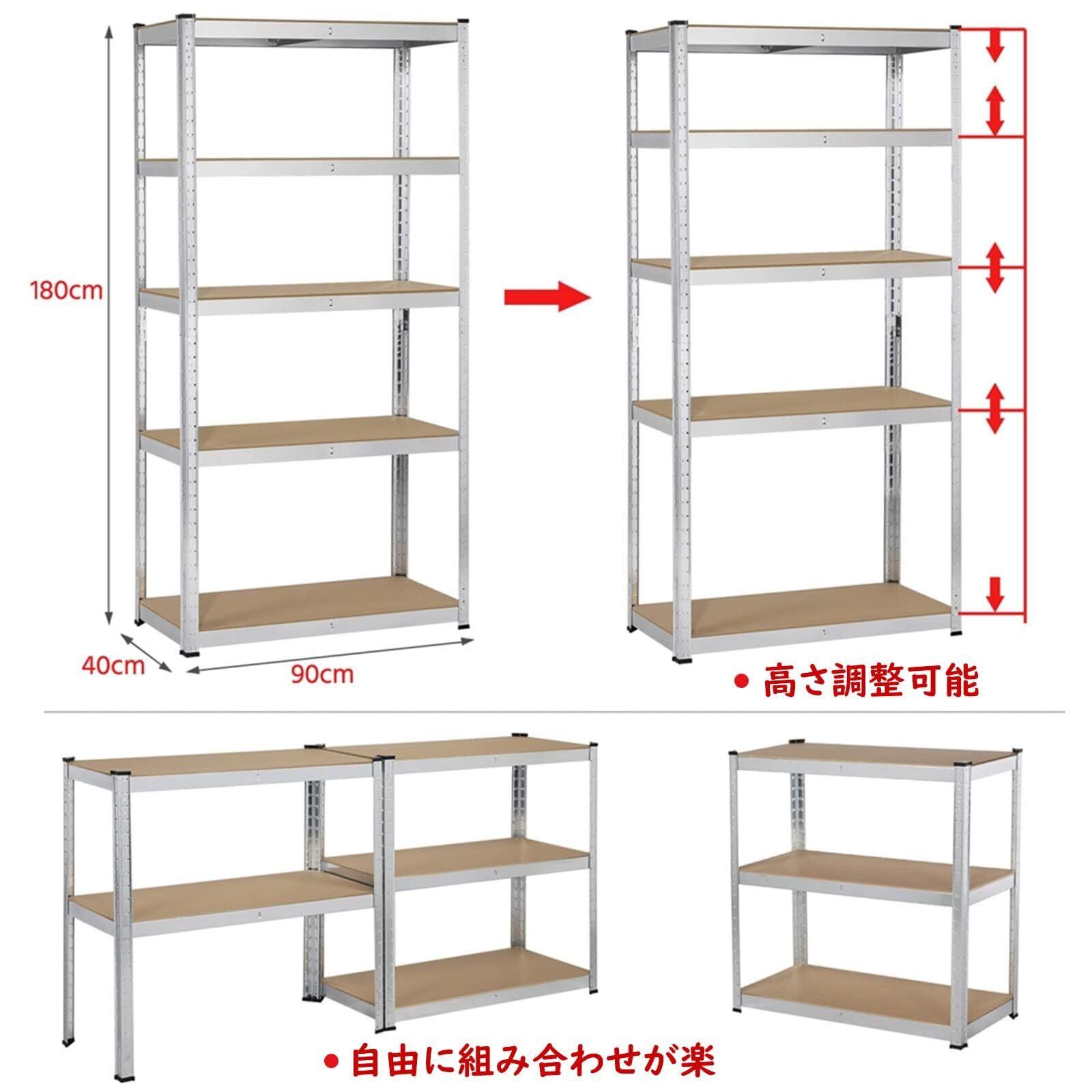 【多目的用途】五段の棚にはビニール製の脚が16あり、物置の収納棚に組み立てられますし、デスクとして平に置くこともできます。地下室、貯蔵室、作業室、お店、家庭、寝室、リビングルーム、キッチンなどに向いています。