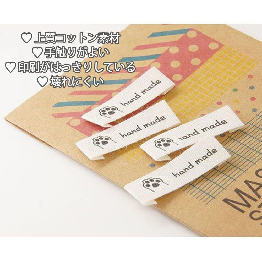 サムコス ハンドメイド用タグ ラベル 100枚セット 綿 かわいい シンプル おしゃれ ラベル 手芸 ロゴ 縫製 DIY 服飾補助材料 衣類 帽子 刺繍タグ 印刷ラベル リュックサック バッグ ハンドメイド ワッペン 手作り Handmade 猫 お花 ウサギ