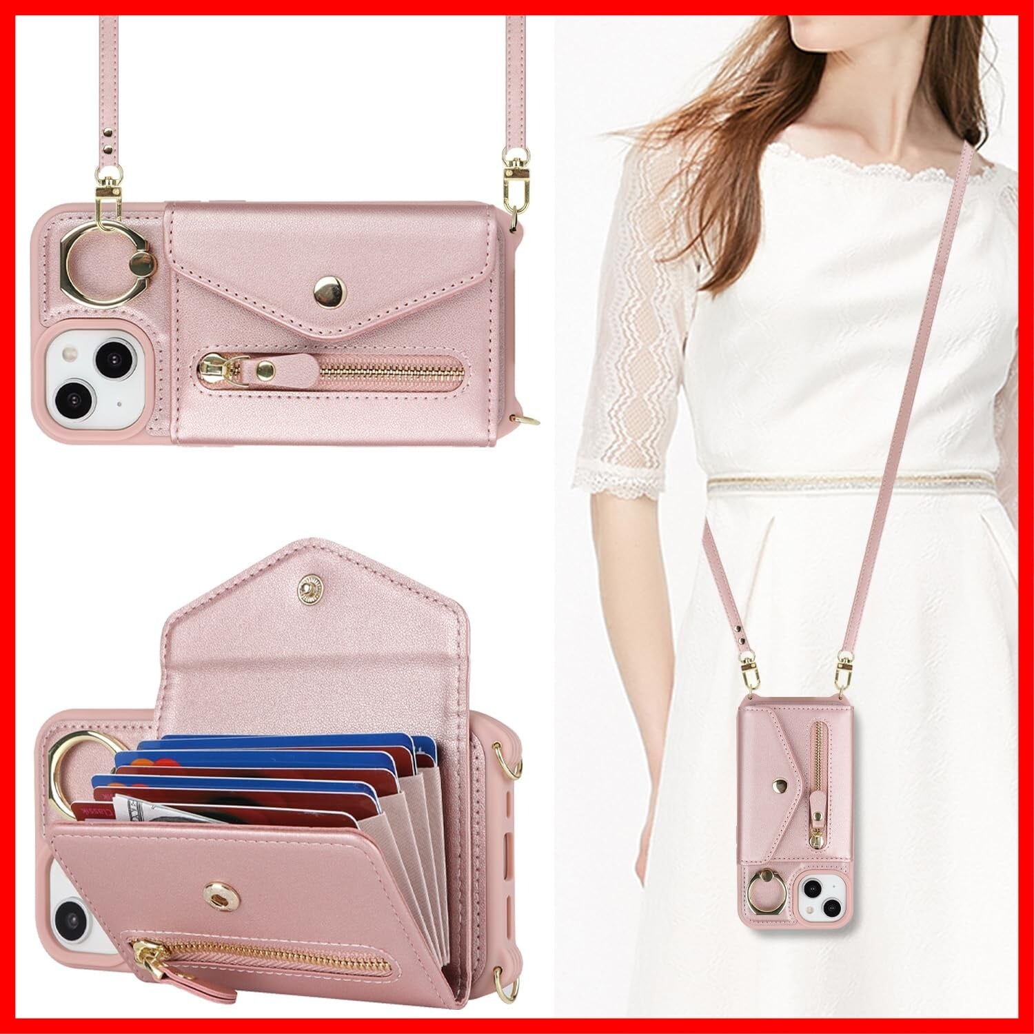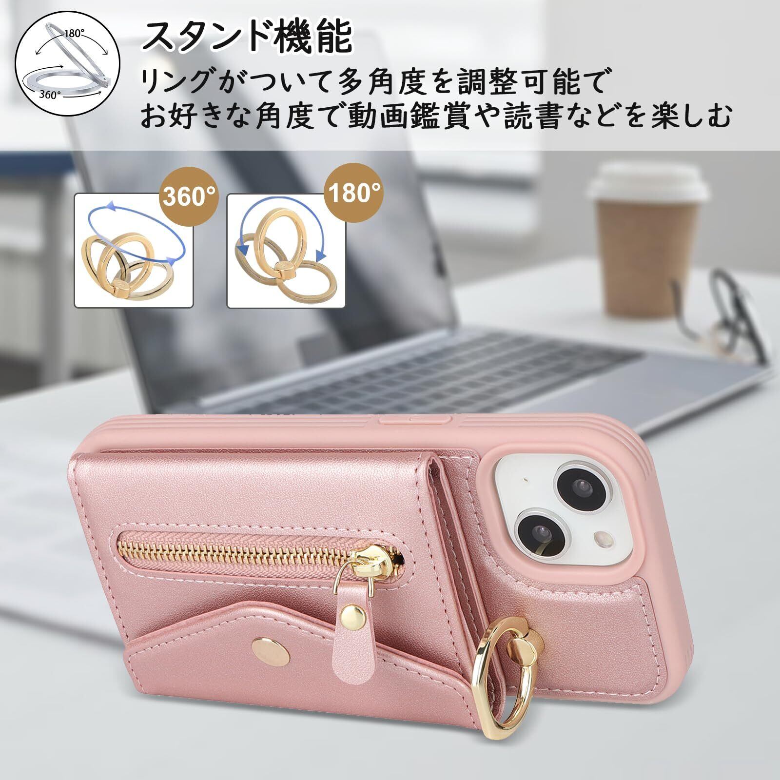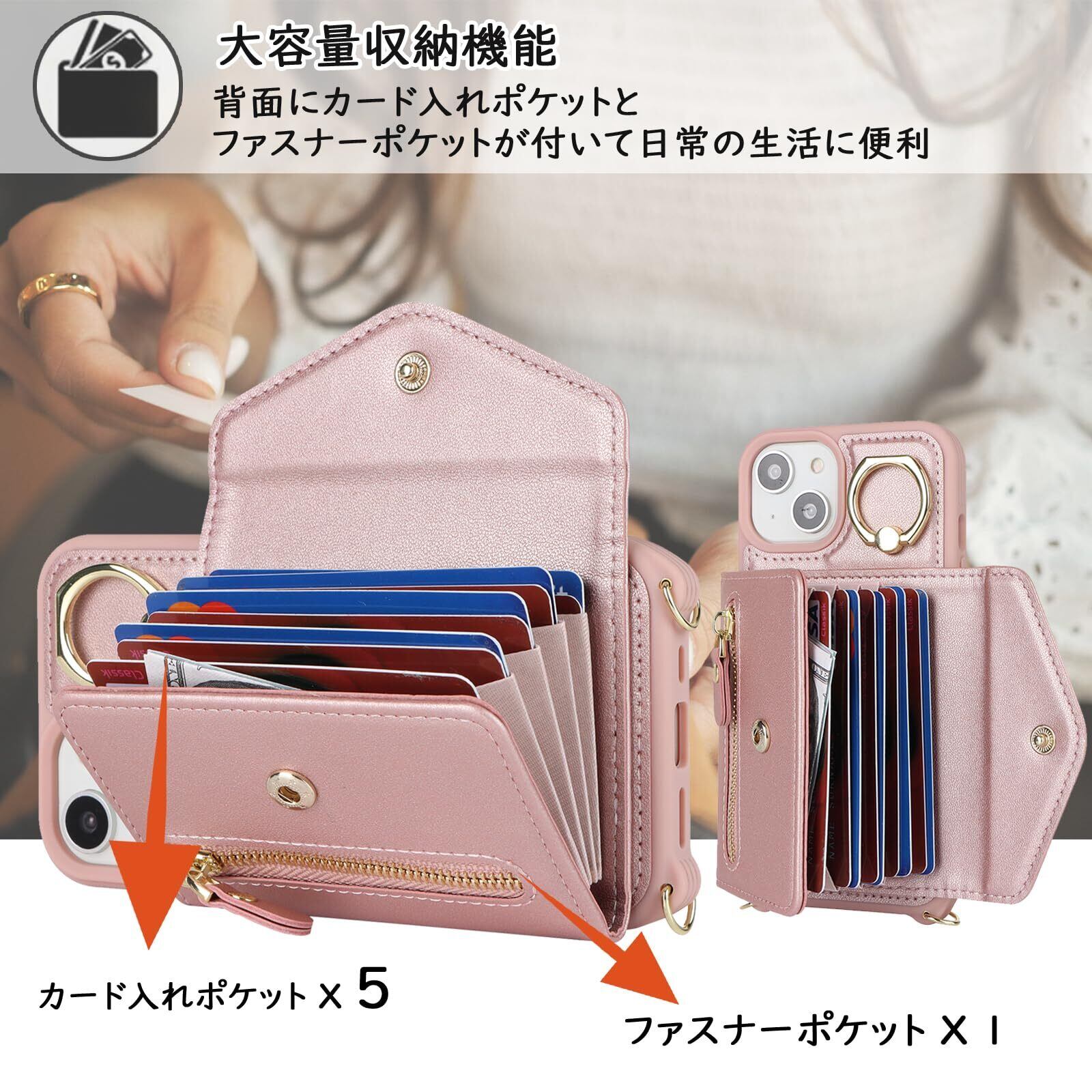 【Hamany】 いphone14 ケース スマホ ショルダー スマホケース iphone 14 ショルダー おしゃれ カード収納 大容量 背面 リング付き スタンド機能 いphone13 ケース 手帳型 耐衝撃 耐久性 女性 肩がけ 首掛け 斜め掛け ストラップ付き 長さ調整可能 カバー -ローズゴールド