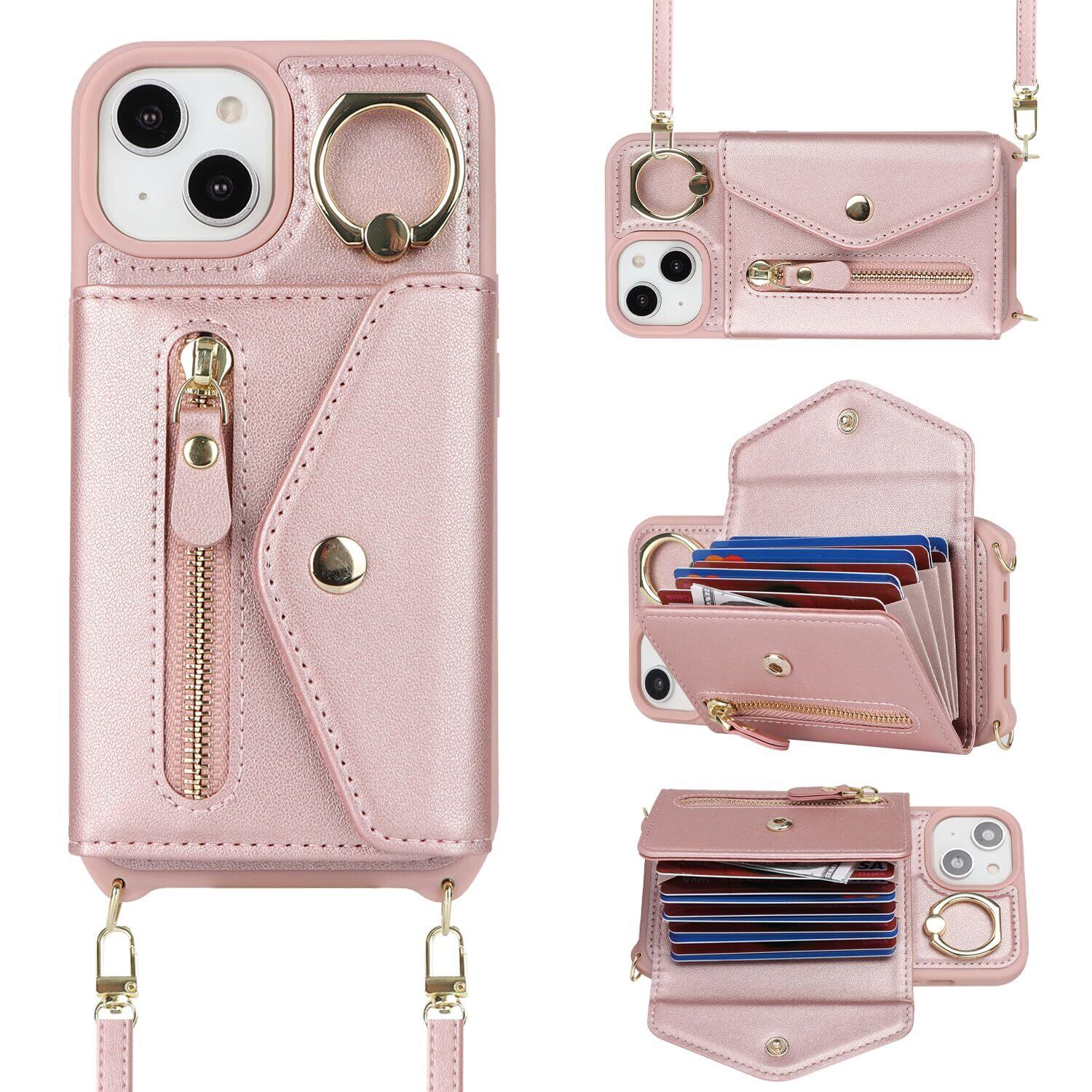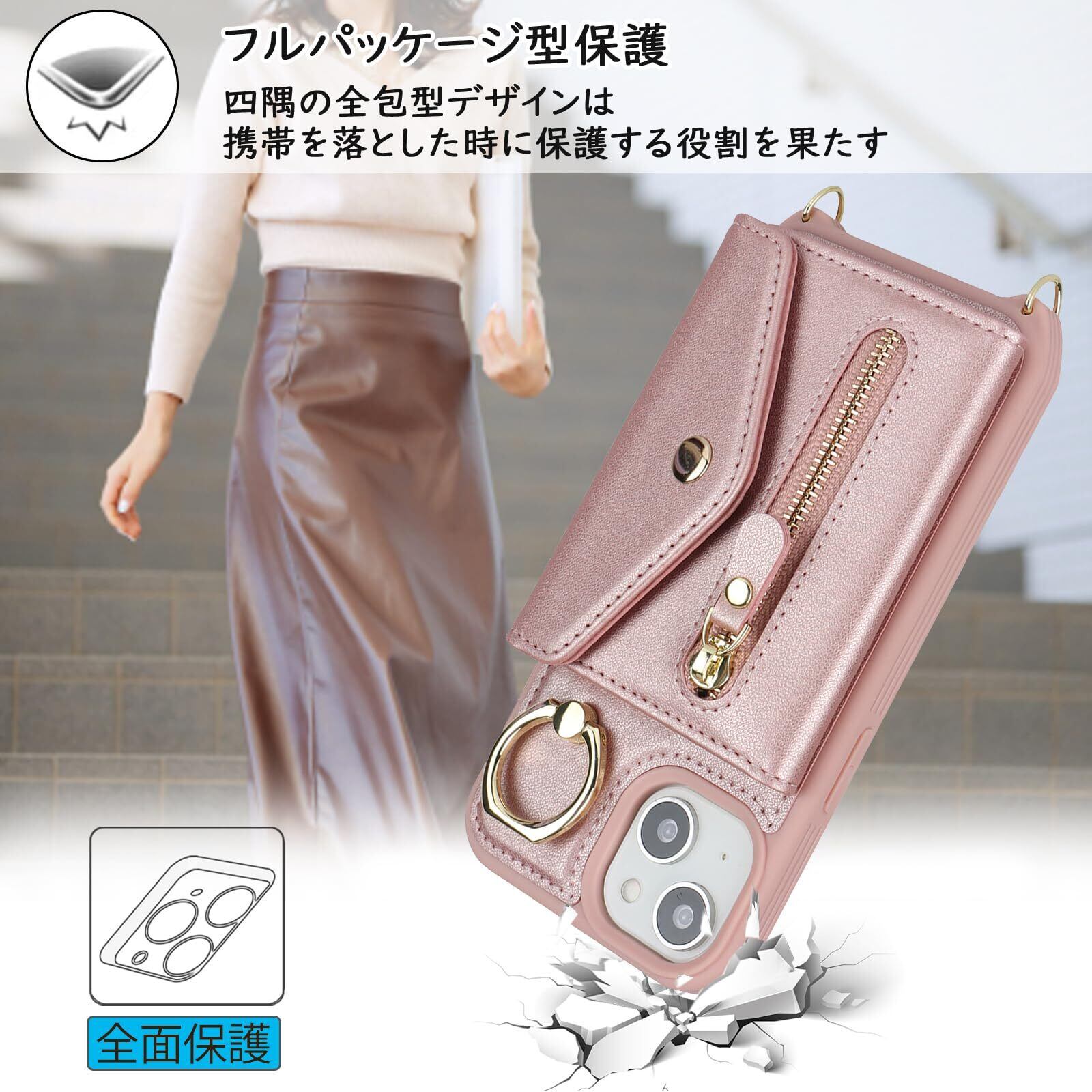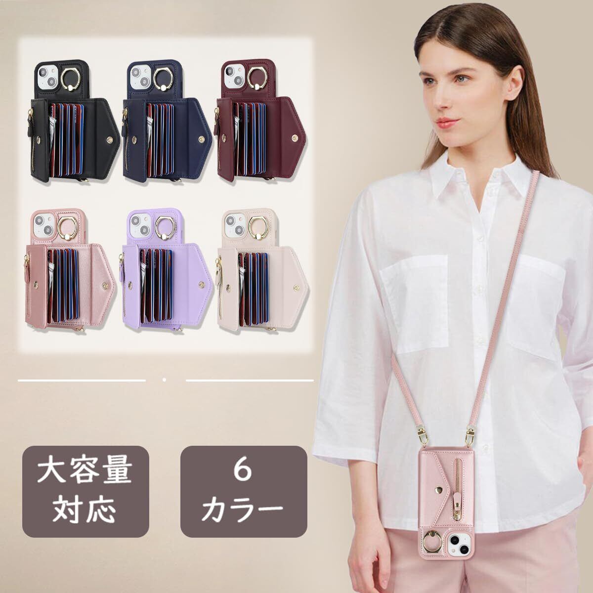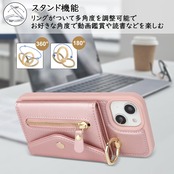 【Hamany】 いphone14 ケース スマホ ショルダー スマホケース iphone 14 ショルダー おしゃれ カード収納 大容量 背面 リング付き スタンド機能 いphone13 ケース 手帳型 耐衝撃 耐久性 女性 肩がけ 首掛け 斜め掛け ストラップ付き 長さ調整可能 カバー -ローズゴールド