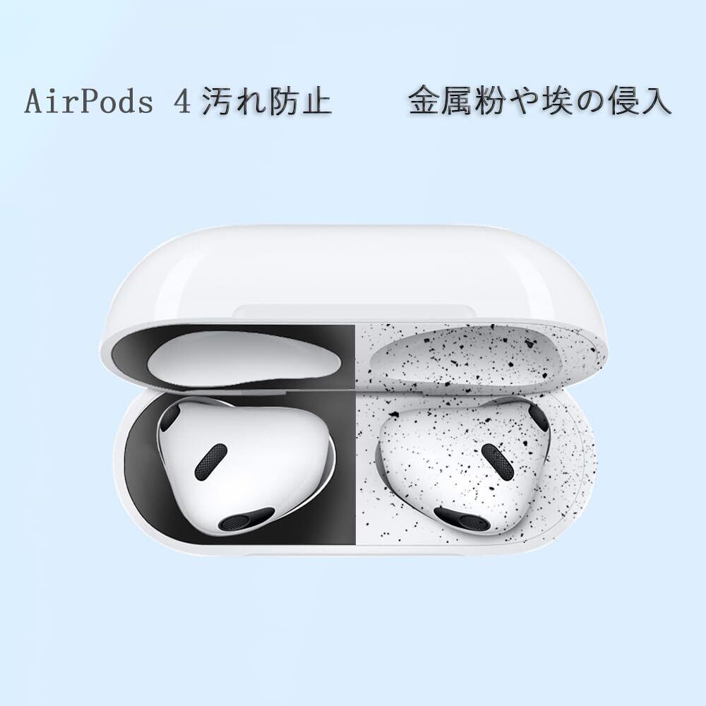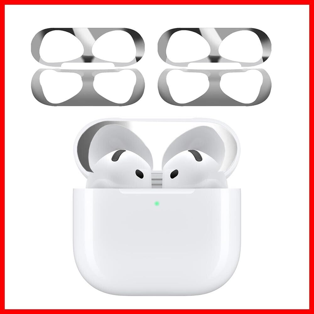 【2024強化版】AMAPC for AirPods 4 ダストガード エアーポッズ 4用 ガードカバー 故障防止 吸着 ほこり ゴミ 金属製 侵入防止 防塵 粉塵防止 シルバー 4枚(2セット)
