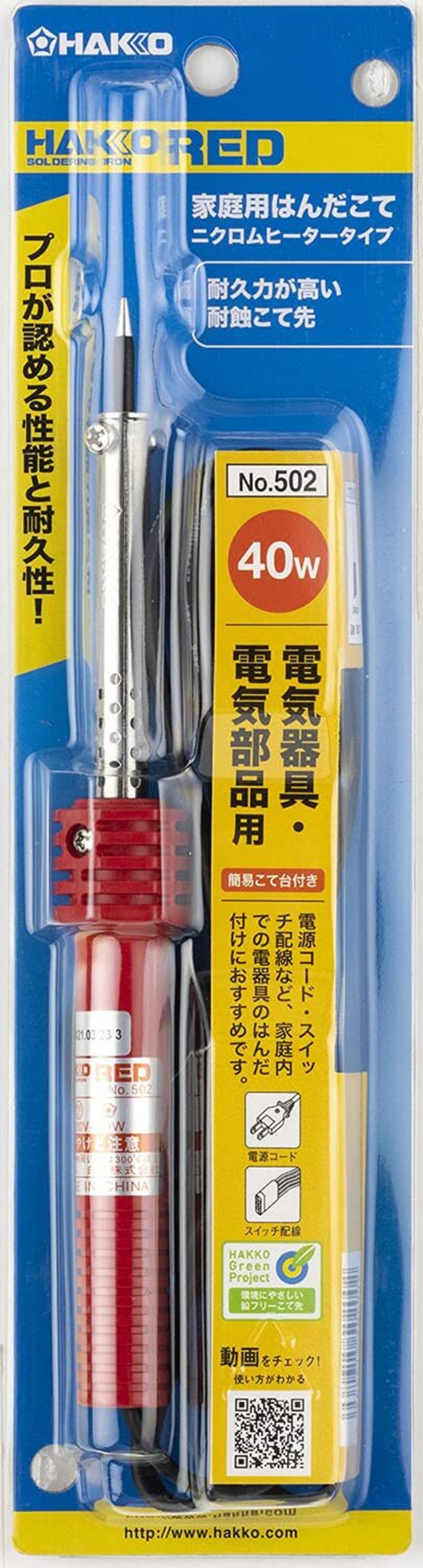 白光(HAKKO) RED 電気器具/電気部品用はんだこて 40W 簡易こて台付き 502