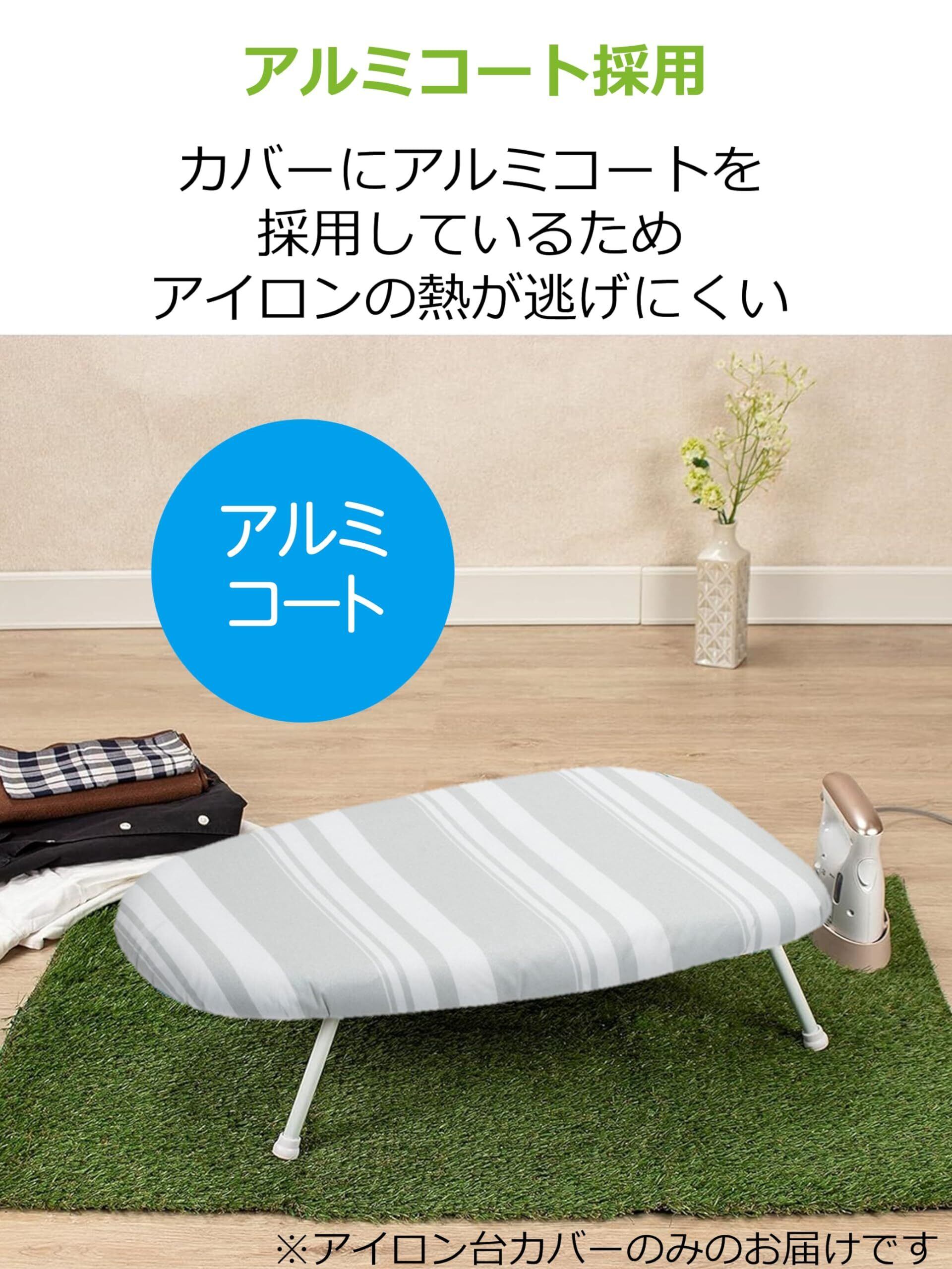 【アルミコート】カバーにアルミコートを採用しているため、アイロンの熱が逃げにくい!すばやくシワを伸ばせるため、短時間でパリッとした仕上がり!