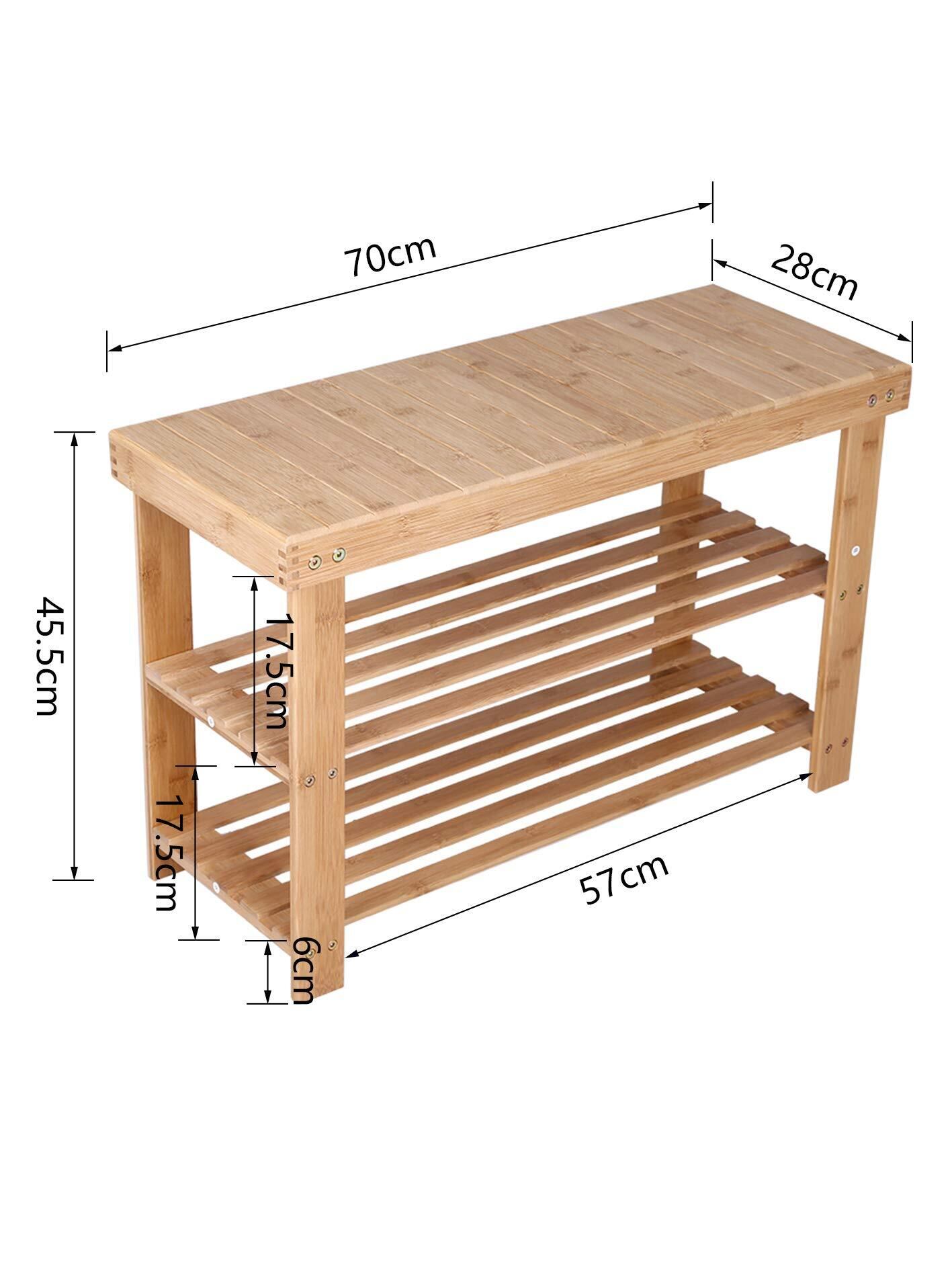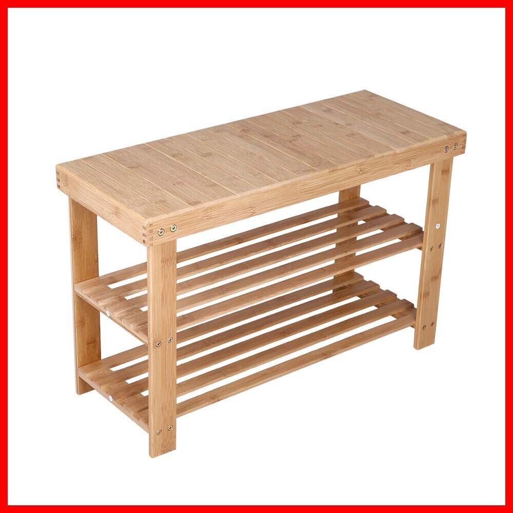 KKTONER 木製シューズラック 玄関ベンチ 2段 靴棚 エントランスベンチ 玄関小物 靴収納 椅子 フットスツール ナチュラル (自然色)