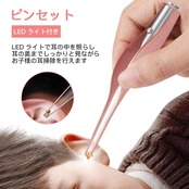 DFsucces LEDライト付き耳かき ピンセット 耳掃除 子供用 極細先端 ステンレス製 ピンセットタイプ ミミ光棒 はっきり見える(ローズゴールド)