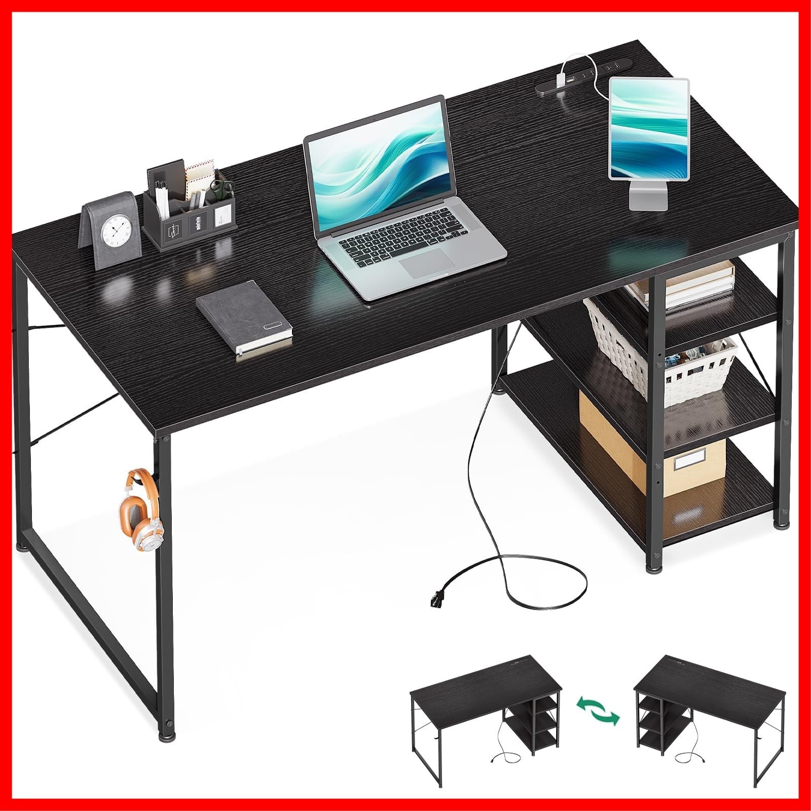 KKL デスク 机 pcデスク 幅120cm コンセント付き 3段ラック付き 収納フック付き 左右入替え対応 パソコンデスク ゲーミングデスク ワークデスク 在宅勤務 桌子 勉強机 学習机 おしゃれ シンプル 組立簡単 ブラック