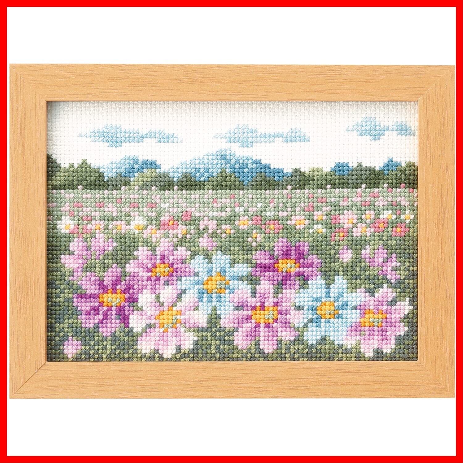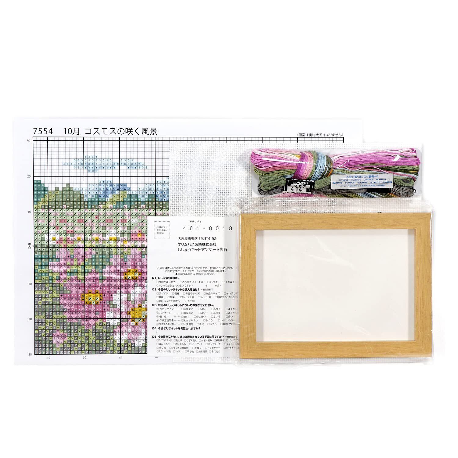 オリムパス製絲 刺しゅうキット 12ヶ月の小さな花風景 NO,7554 10月 コスモスの咲く風景 ~マリー・カトレーヌコレクション~