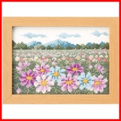 一面のコスモス畑が秋の風を感じさせる刺繍キットです。