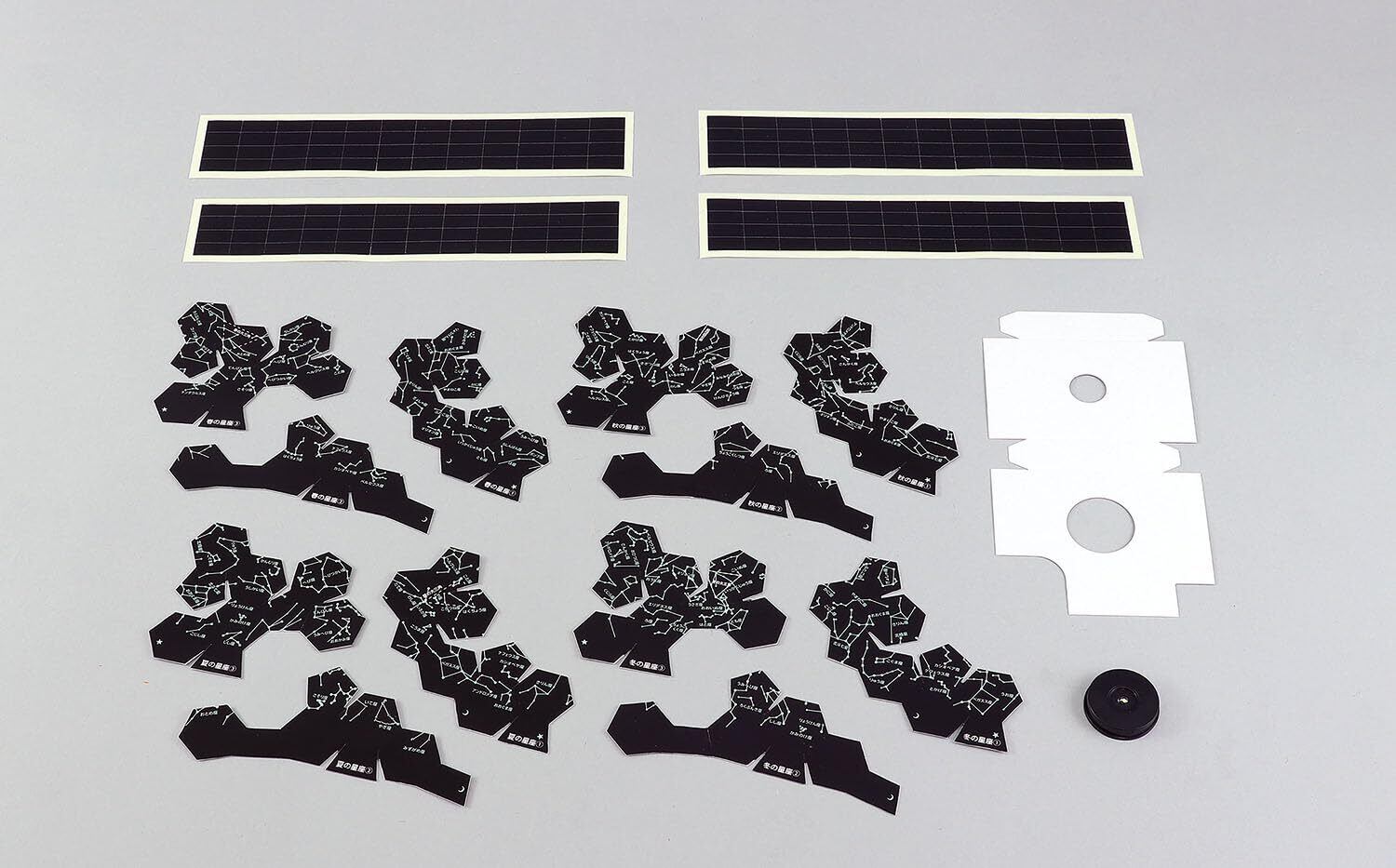 ●セット内容:LEDコインライト×1、黒シール×4、土台台紙×1プラネタリウム台紙春×3、プラネタリウム台紙夏×3、プラネタリウム台紙秋×3、プラネタリウム台紙冬×3。
