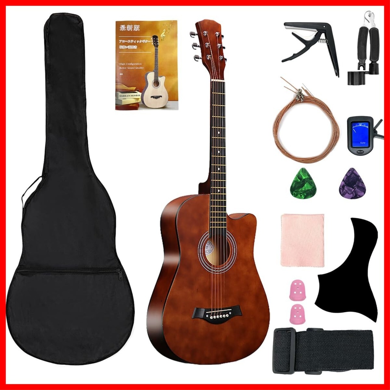 AZEKIL ギター 初心者セット アコースティックギター セット 38インチ 入門練習 学生 子供 大人用 アコギ クラシック チューナー ソフトケース カポ ピック付属 簡易教則本付き (チョコレート, 38インチ) | hananoki
