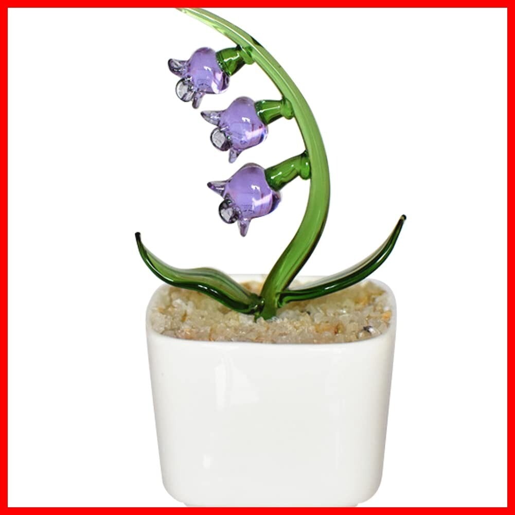 HIGHAWK るり製 工芸品 装飾 飾り物 オブジェ 小物 鉢植え インテリア 置物 人工植物 ミニ植木鉢 オーナメント 手作り 玄関 机 テーブル ガラスアート (パープル・スズラン)