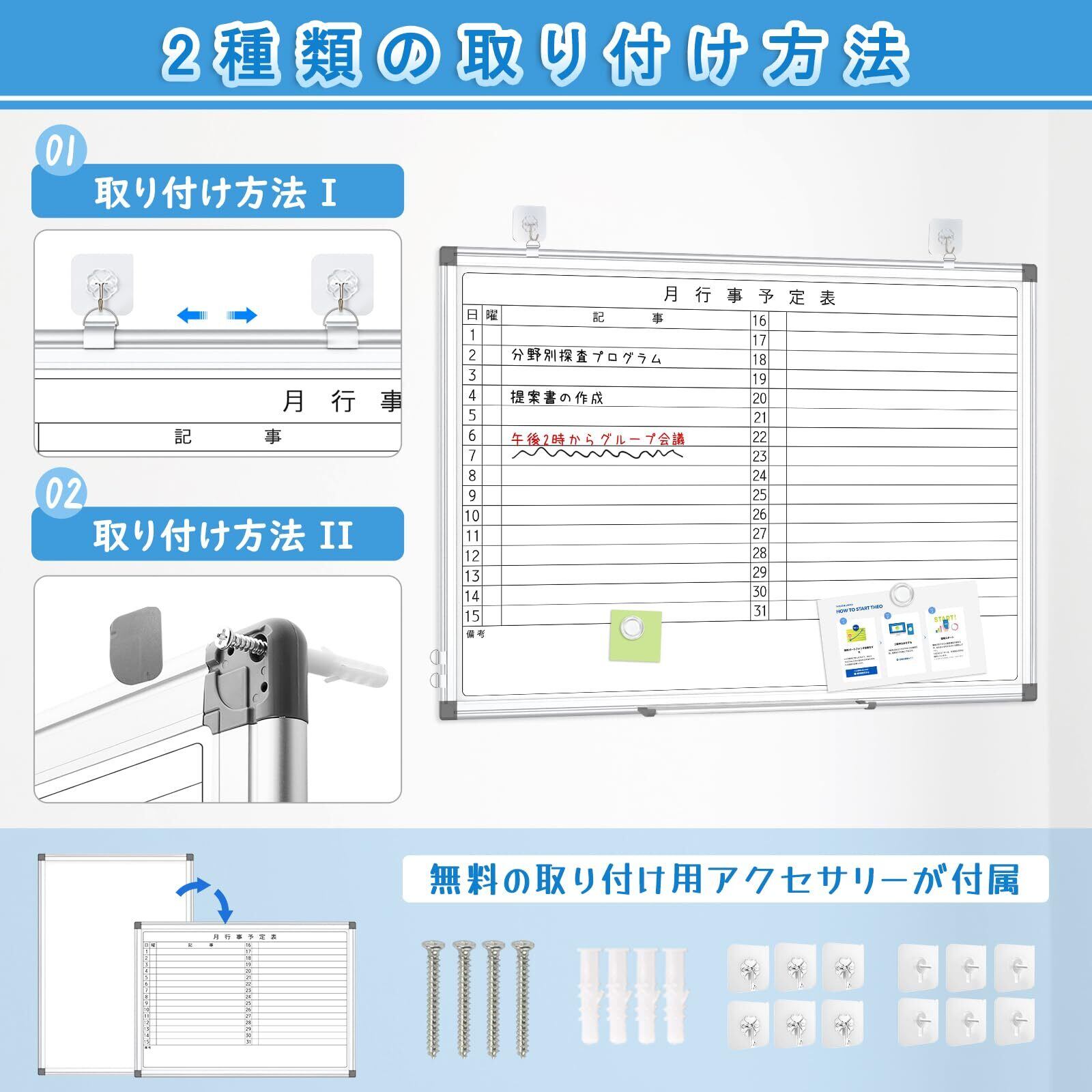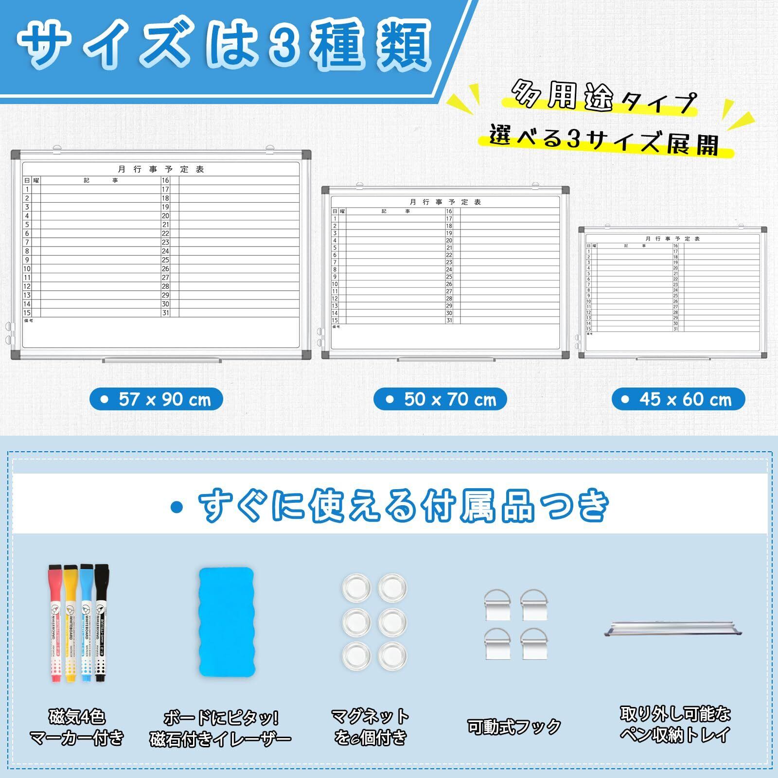Walspax ホワイトボード 月予定表 壁掛 70x50cm マグネット ホワイトボード 罫線 月間予定表 行動予定表 ボード 両面使用 縦横兼用 アルミフレーム スケジュール帳 お支度ボード スケジュールボード ホワイトボード カレンダー おしゃれ 備考 家庭用 オフィス用品 マーカー・イレイザー付き | hananoki