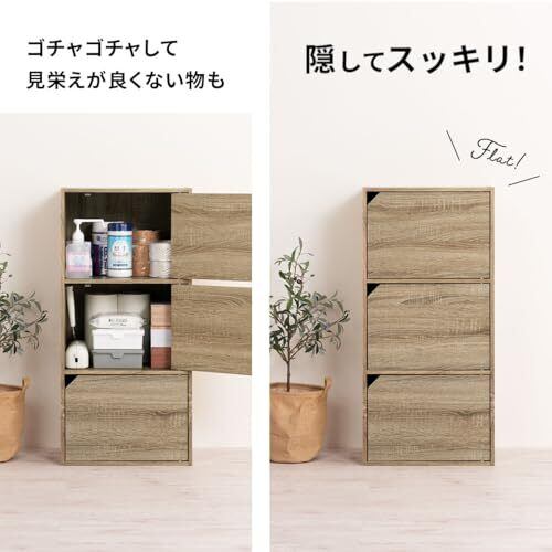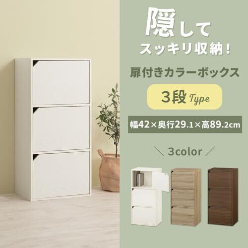 ぼん家具 カラーボックス 扉付き 3段 幅42×奥行29.1×高さ89.2cm 収納ボックス 本棚 収納棚 木目調 マルチラック オーク