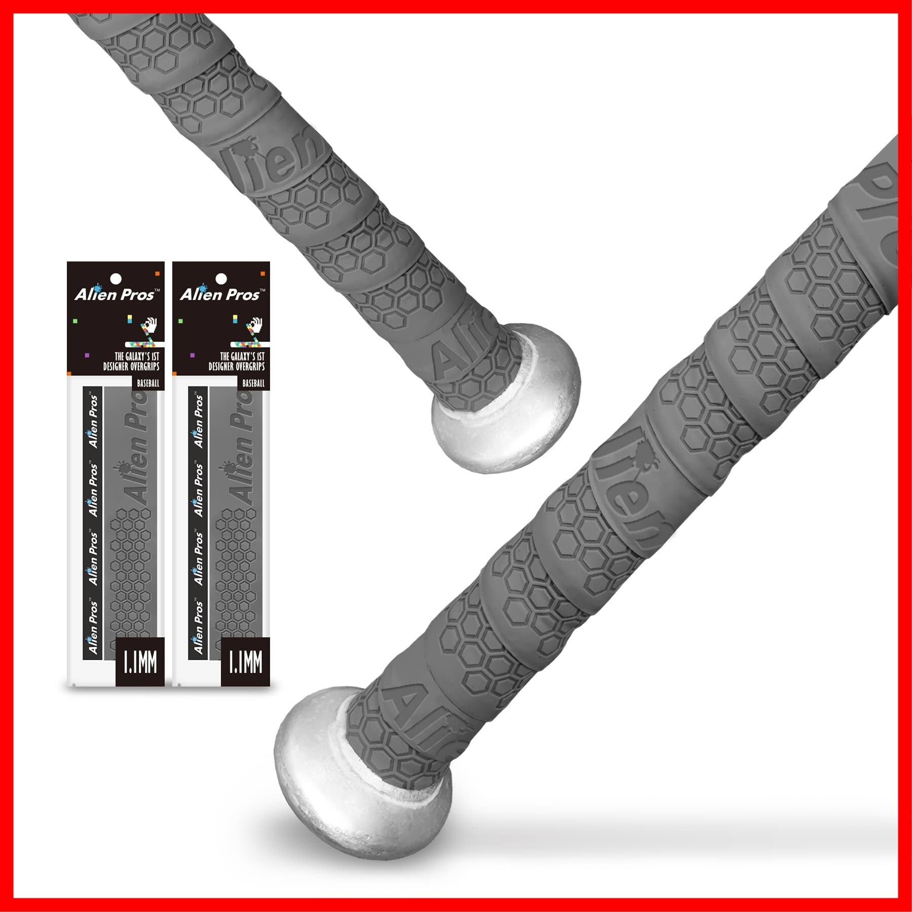 Alien Pros野球用バットグリップテープ(2/4グリップ)– 1.1 mmプレカット、プロ品質のバットテープ–古い野球用バットグリップの代替品–バットを保護して、壮大なホームランを打ちましょう(2/4グリップ)