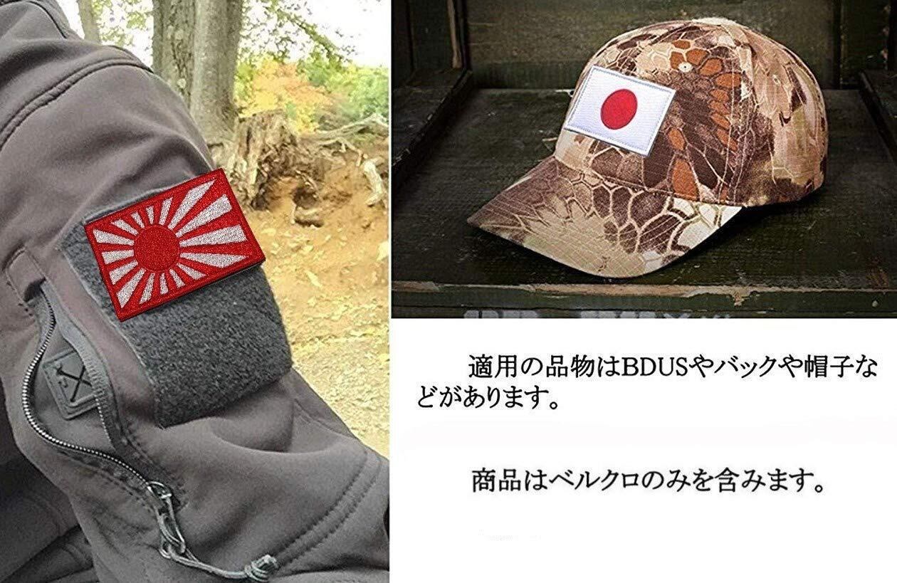 【Shiseikokusai 】日本国旗ワッペン 日本海軍 旭日旗 2枚セット 自衛隊 高密度刺繍 腕章 ワッペン マジックテープ 日の丸 パッチ サバゲー/バッグ/キャップ などに パッチ(ribenqi-junqi-2mei) | hananoki