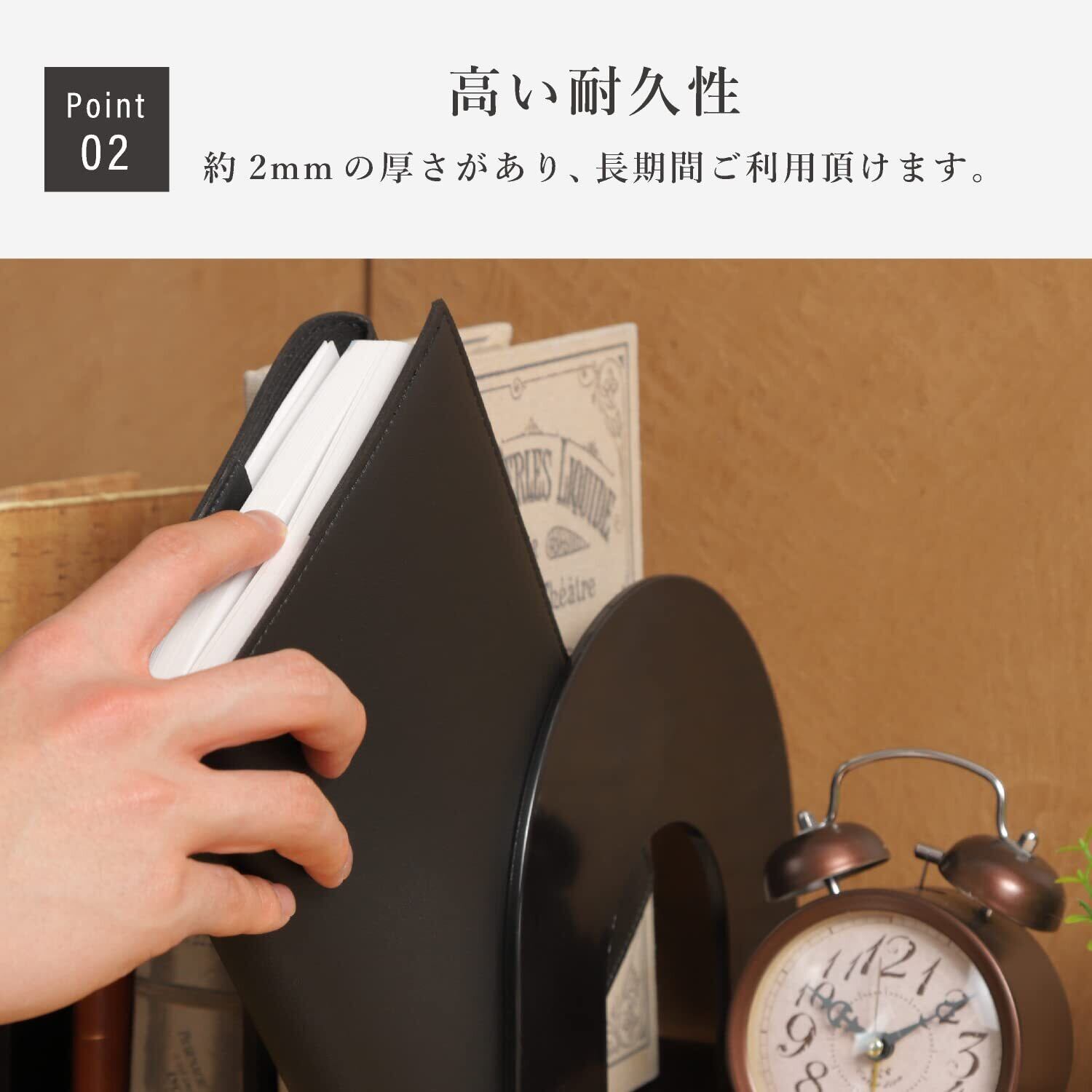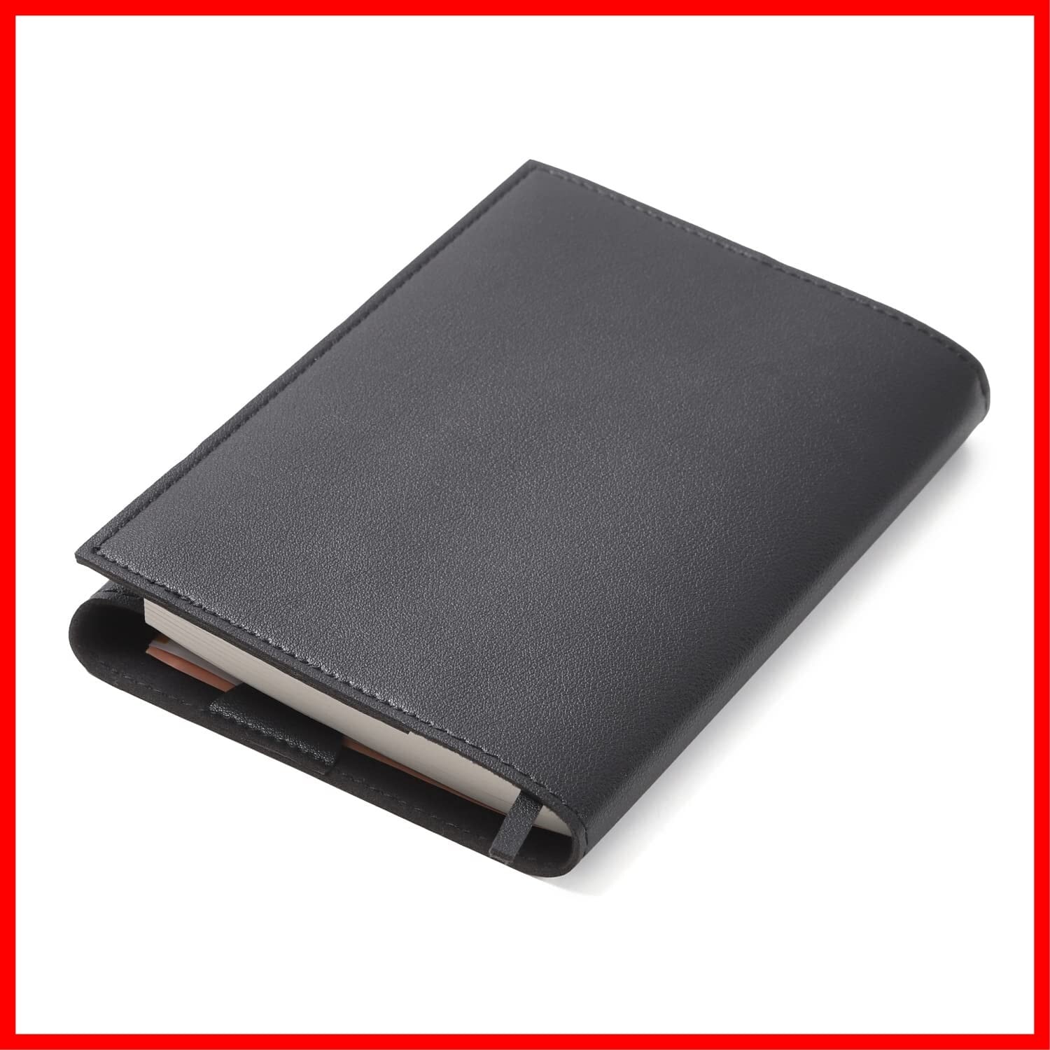 ブックカバー 厚み調整可 栞付き 合成レザー (ブラック, B6上製本)