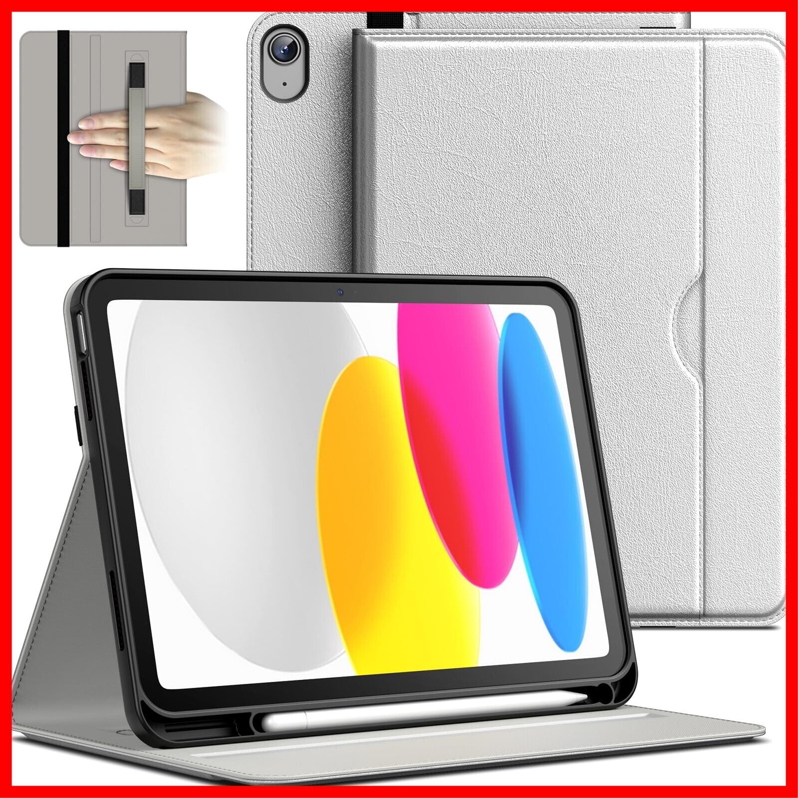 JETech iPad(A16)ケース 第11/10世代(2025/2022モデル)用PUレザー ビジネスフォリオ タブレット保護カバー Pencilホルダーとポケット付き マルチアングルの視聴 (シルバー) | hananoki