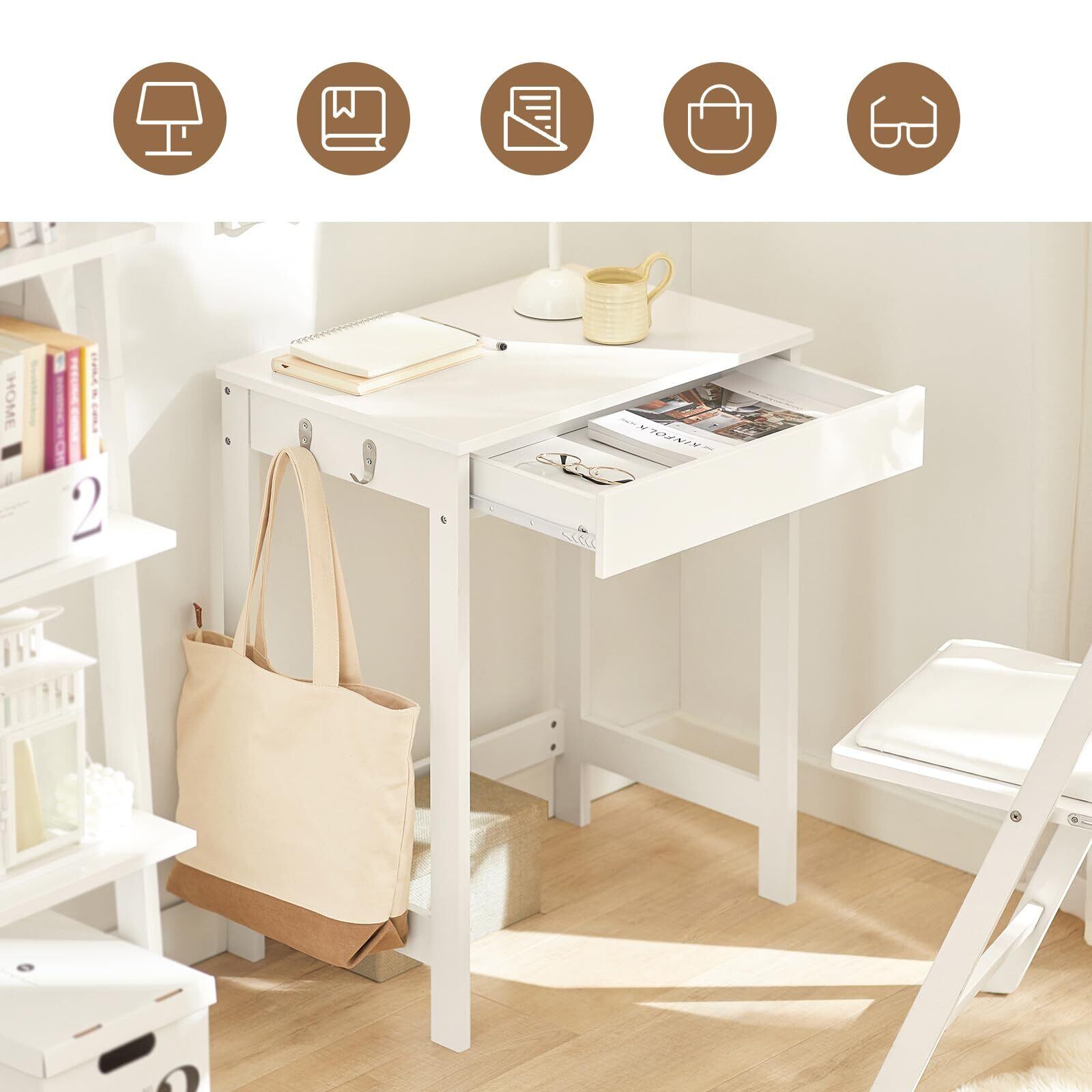 SoBuy ミニデスク コンパクトデスク 机 小さい パソコンデスク コンパクト 幅60×奥行き40×高さ76cm pcデスク 机 引き出し付き 木製 一人暮らし シンプル 勉強机 白 学習机 作業机 在宅勤務 ミシン台 オフィス 机 ワークデスク 机 小さい (FWT43-W/ホワイト) | hananoki