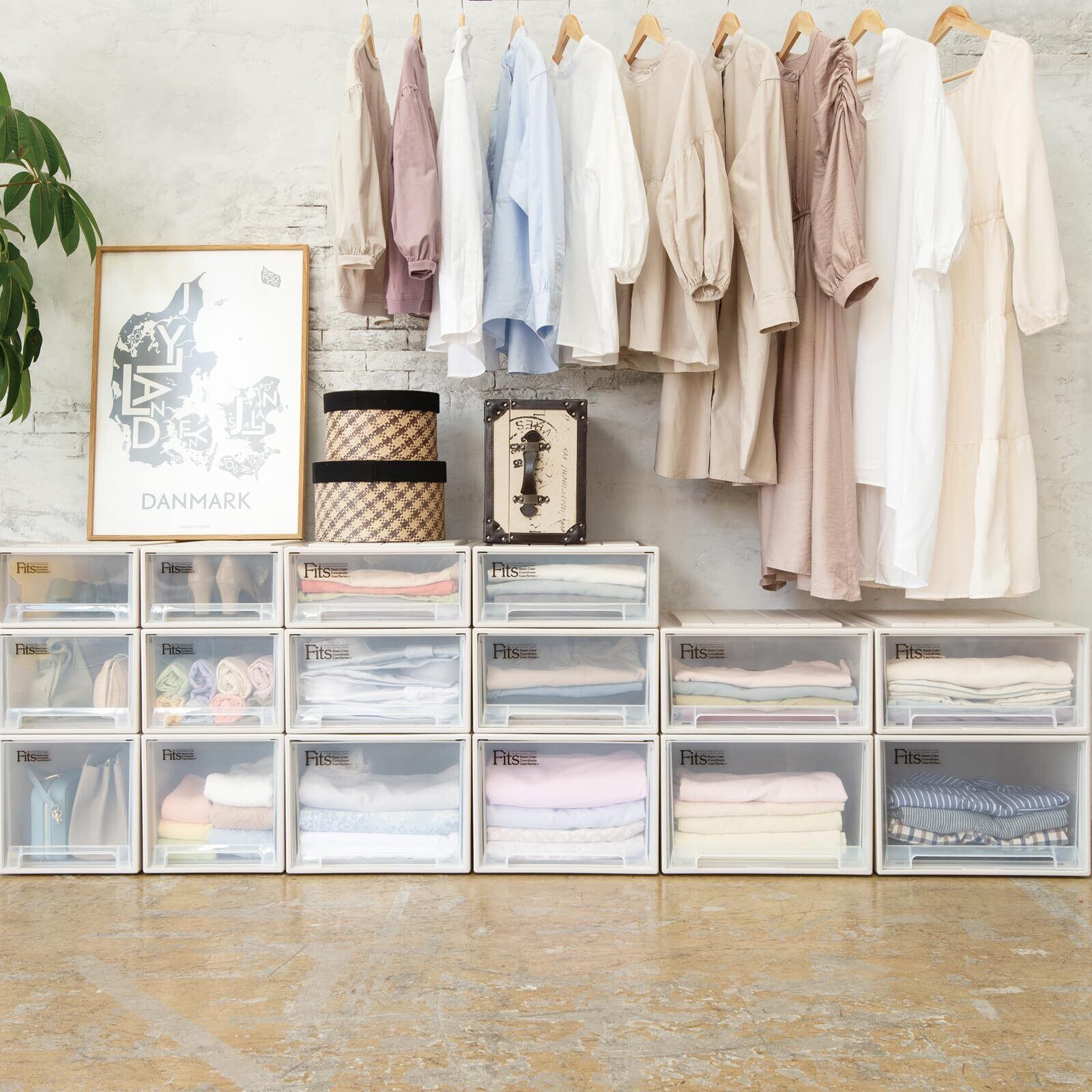 クローゼットの収納に最適な収納ケースです。引出しの飛び出しを防ぐロック機能付き。積み重ねてもたわみにくい丈夫な前枠が付いています。