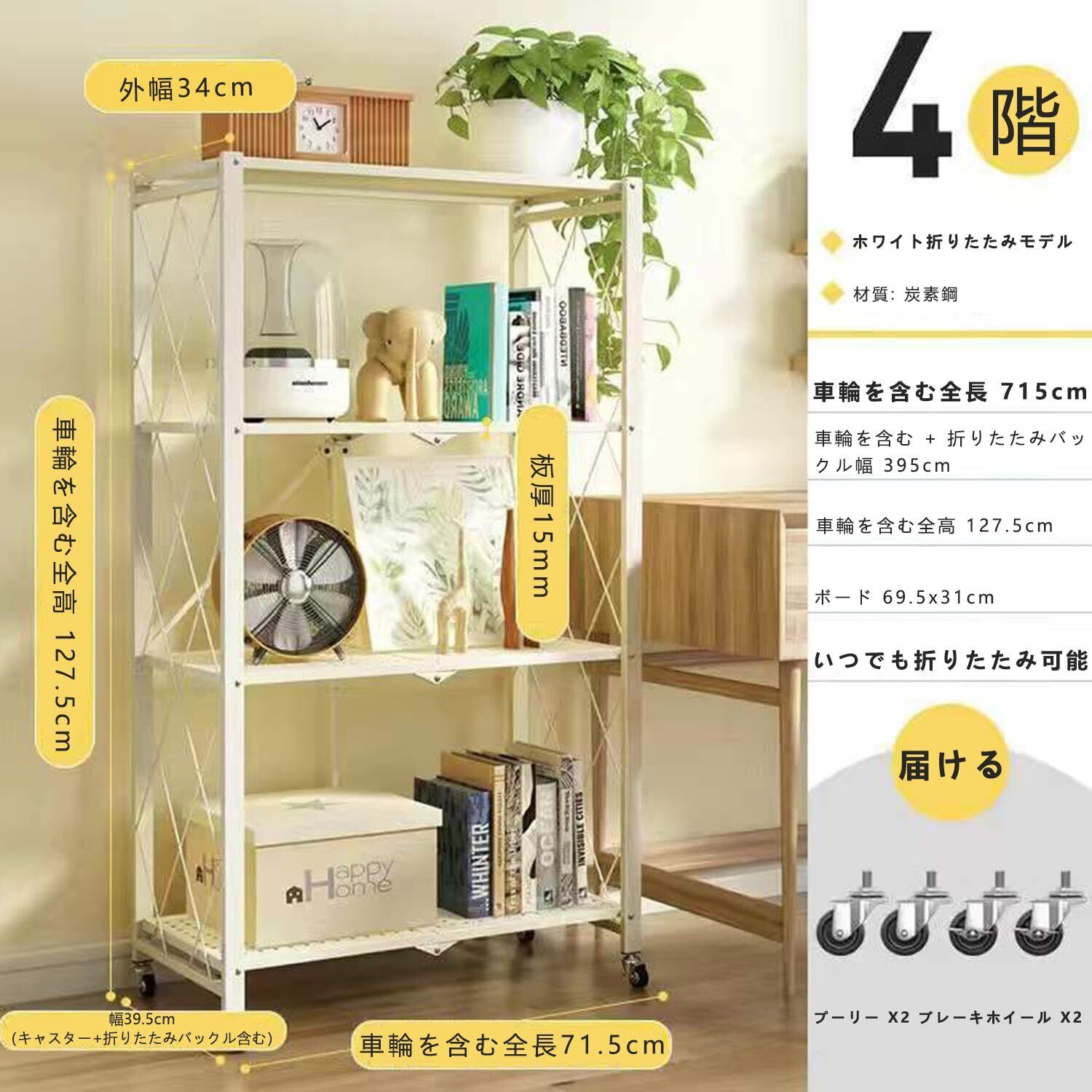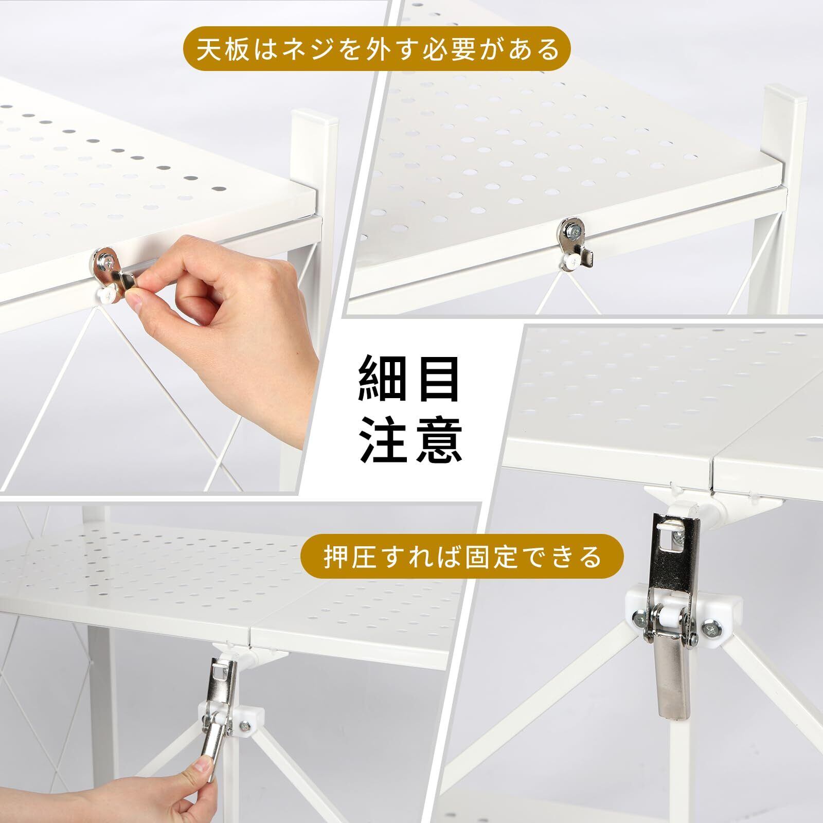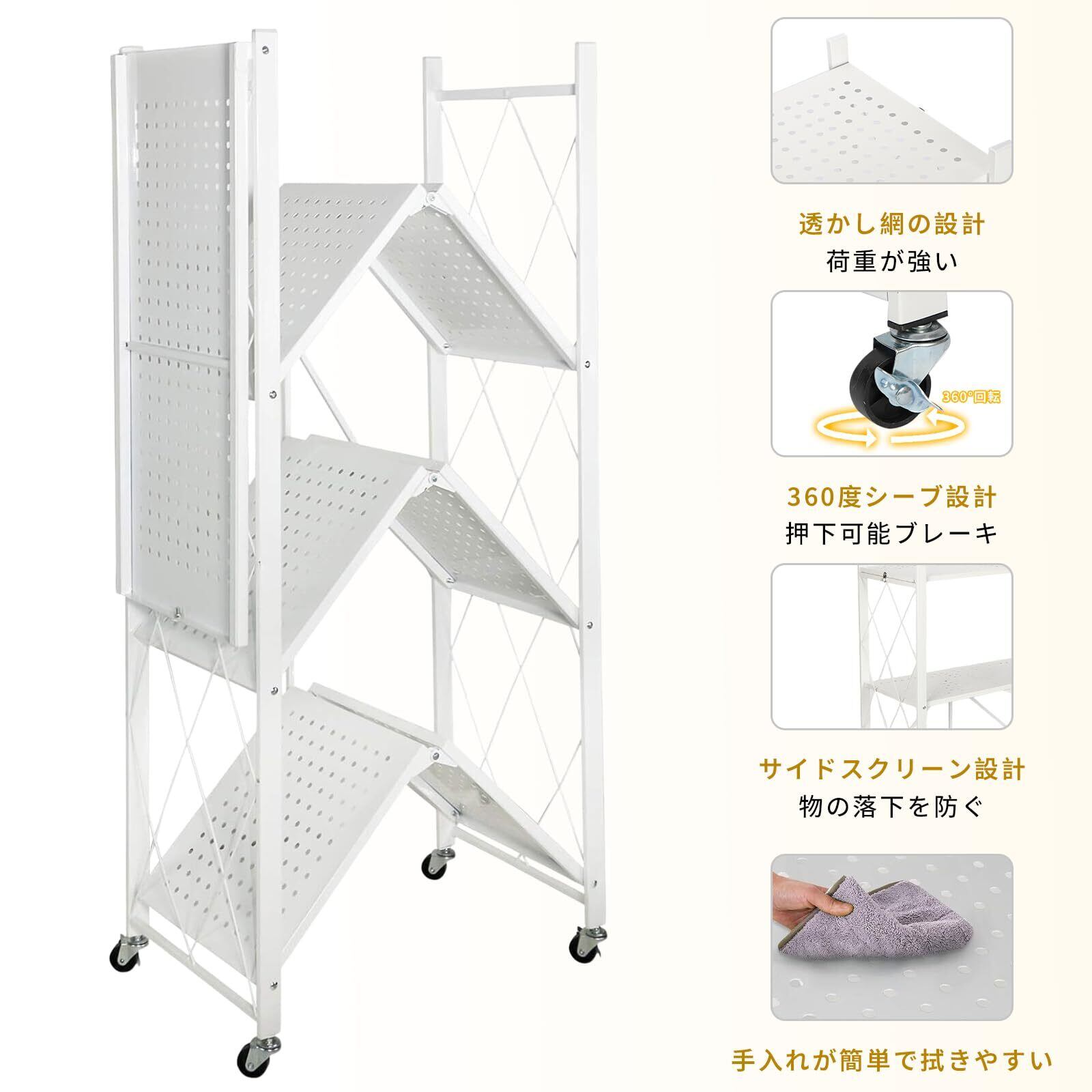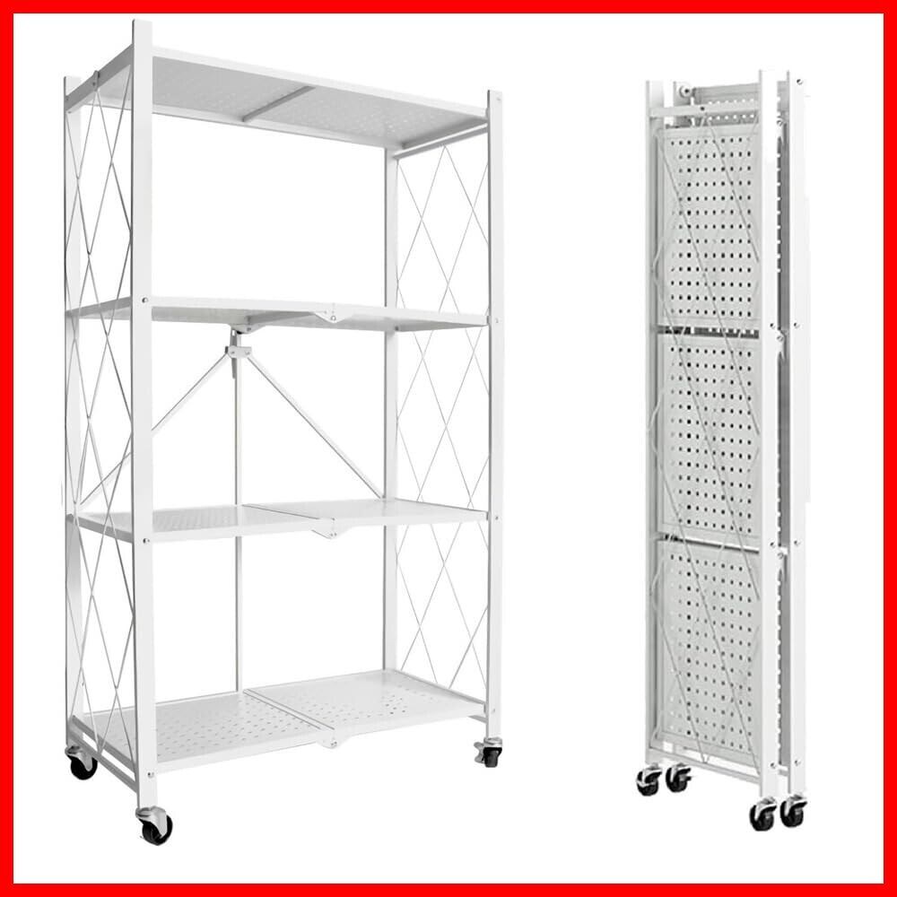 seacall 折りたたみラック 折り畳み メタルラック 4層 大容量 幅70CM 金属製の収納ラック 折り畳み棚 360°キャスター付きで移動可能 ック設置不要 家庭用収納ラック 折りたたみ リビングルーム キッチン 寝室 書斎などに (白, 四階) | hananoki