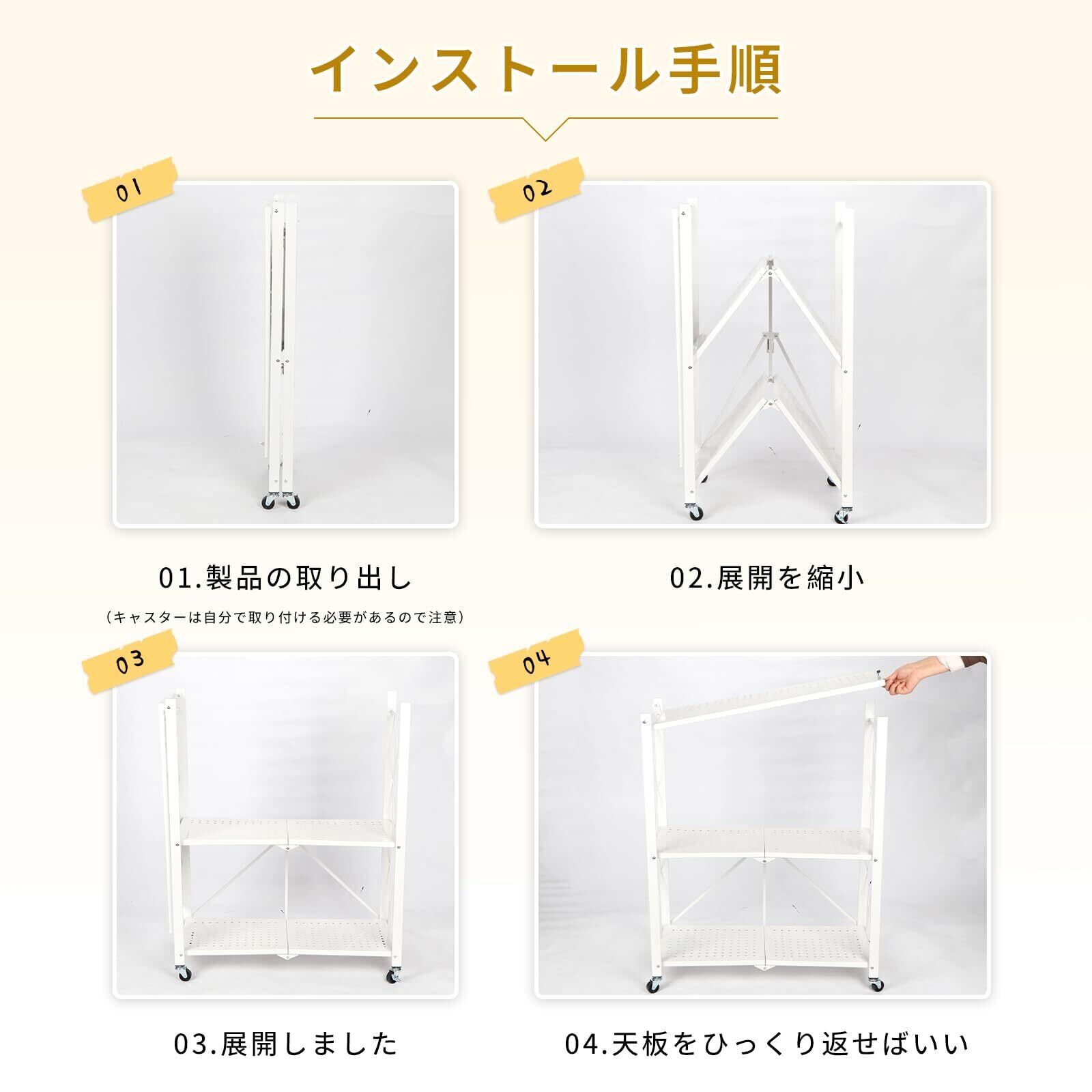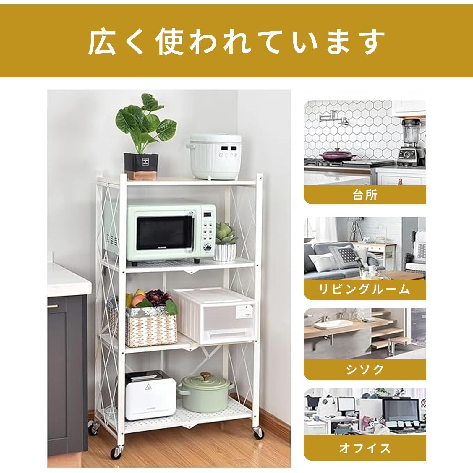 seacall 折りたたみラック 折り畳み メタルラック 4層 大容量 幅70CM 金属製の収納ラック 折り畳み棚 360°キャスター付きで移動可能 ック設置不要 家庭用収納ラック 折りたたみ リビングルーム キッチン 寝室 書斎などに (白, 四階)