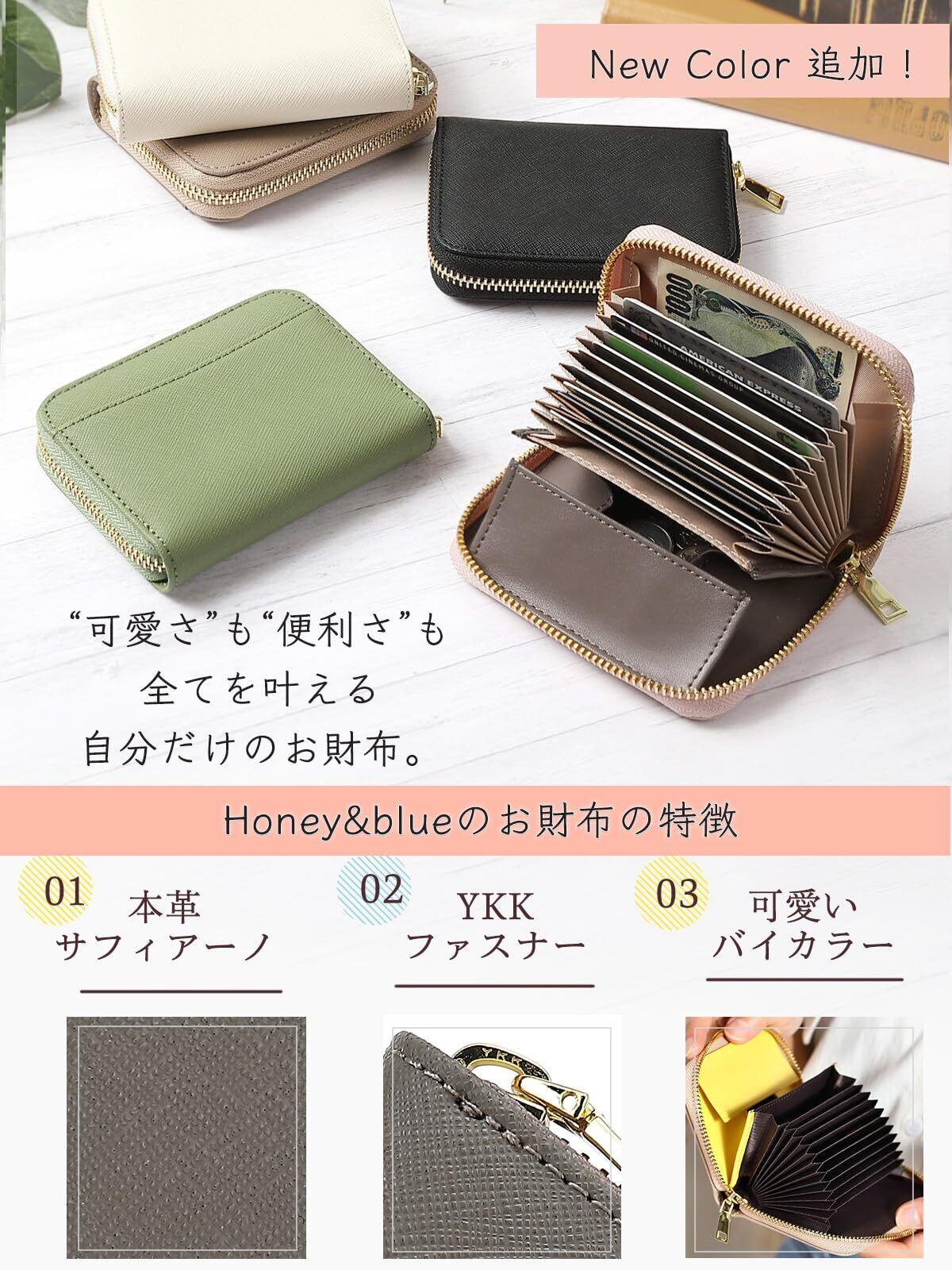 [honey&blue] ミニ財布 カードケース レディース お札が折れない 二つ折り財布 本革 YKKファスナー スキミング防止 (アイボリー×キャメル)